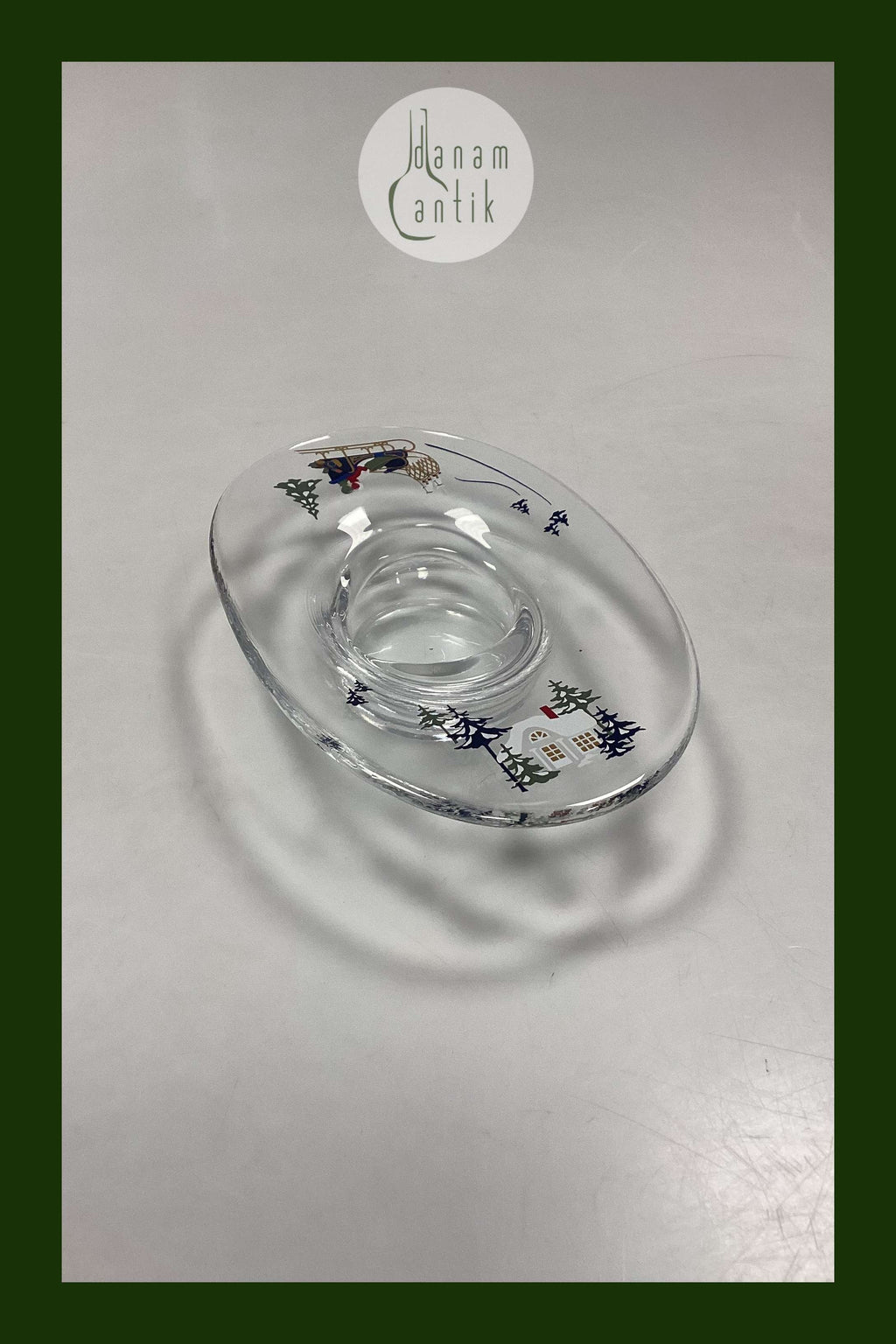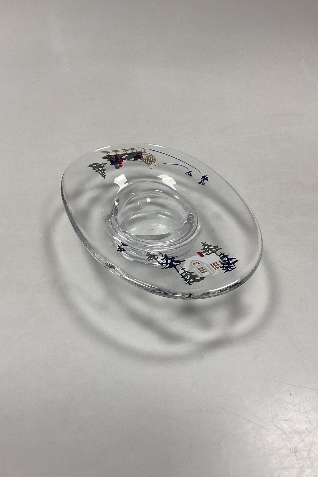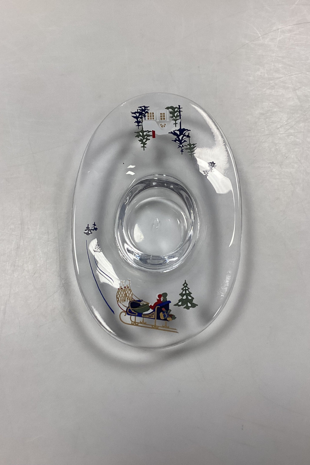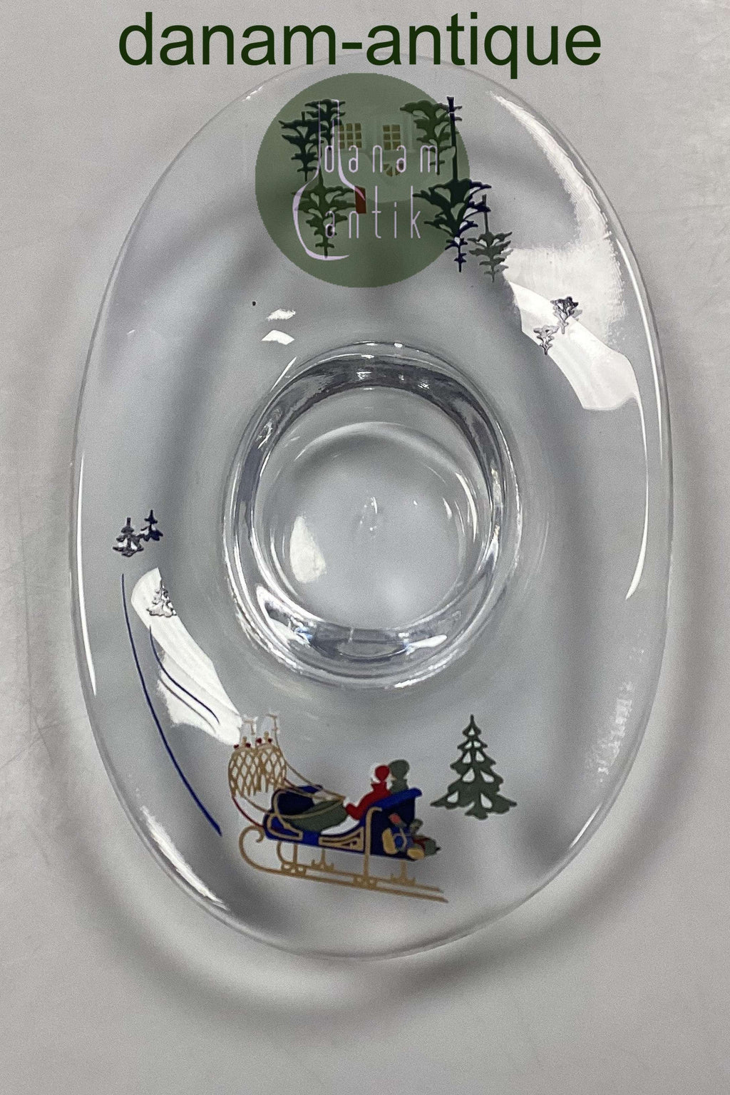 Holmegaard Golden Christmas Kalenderlysestage 1998 - Heste trækker kane, hus og grantræer. Designet af Jette Frölich og Michael Bang.