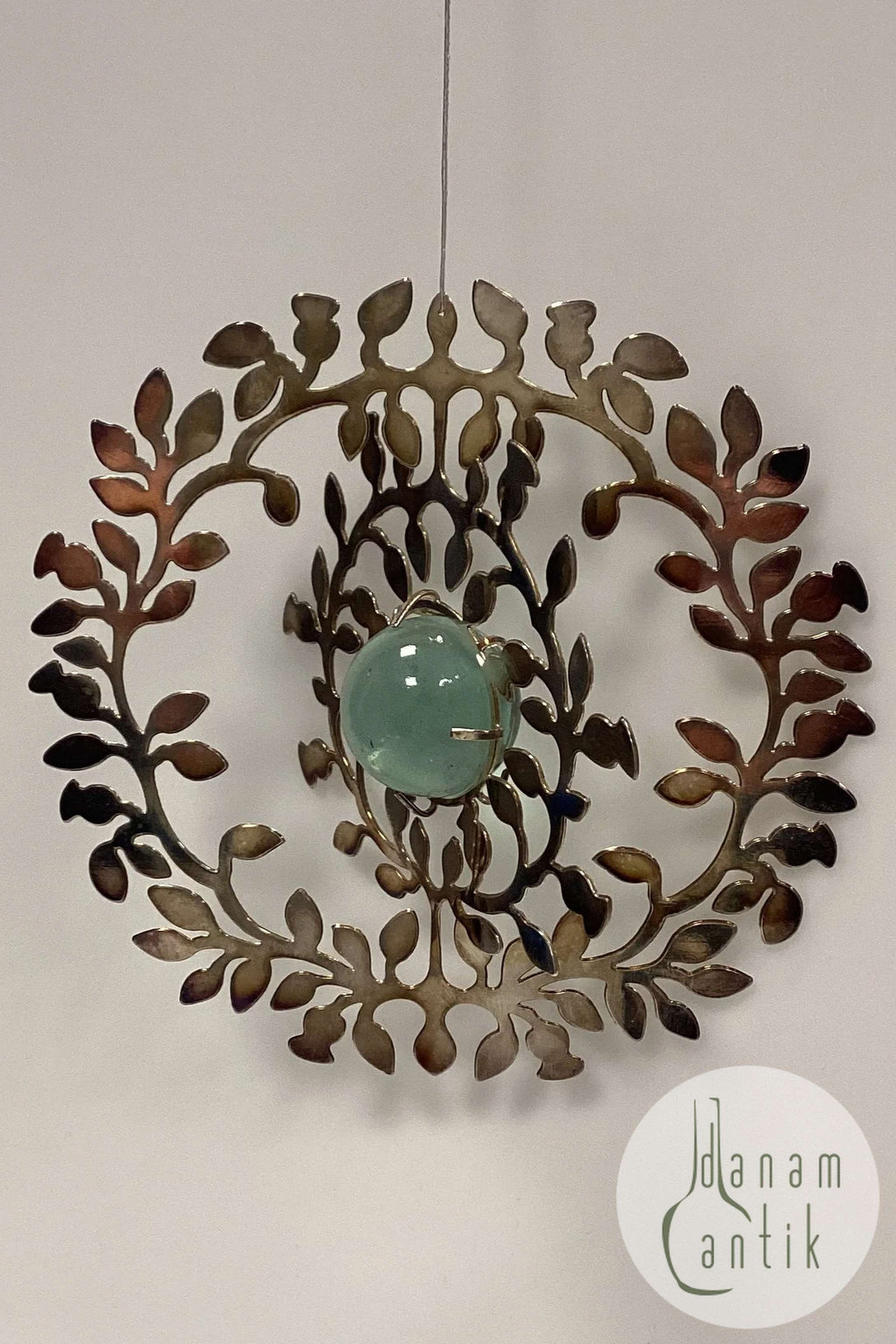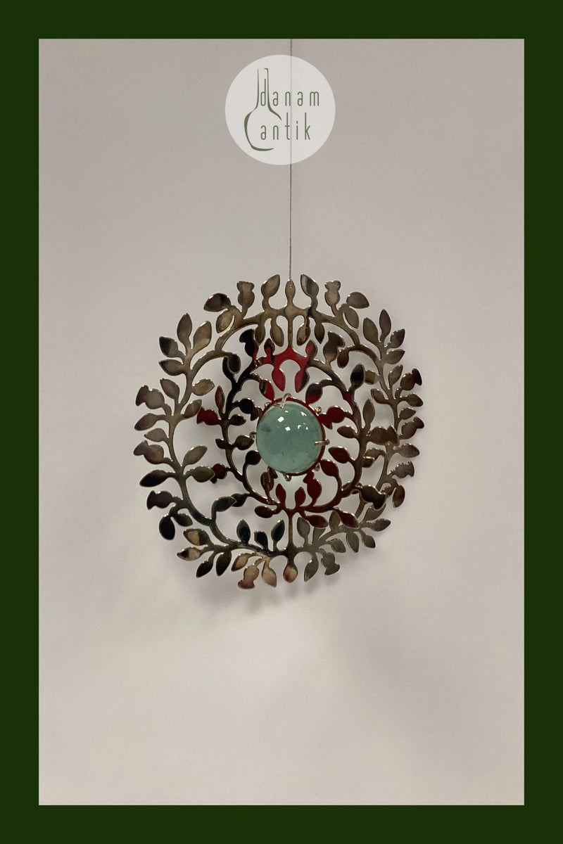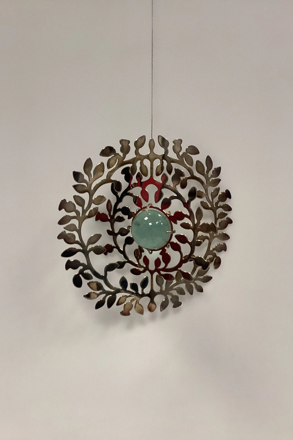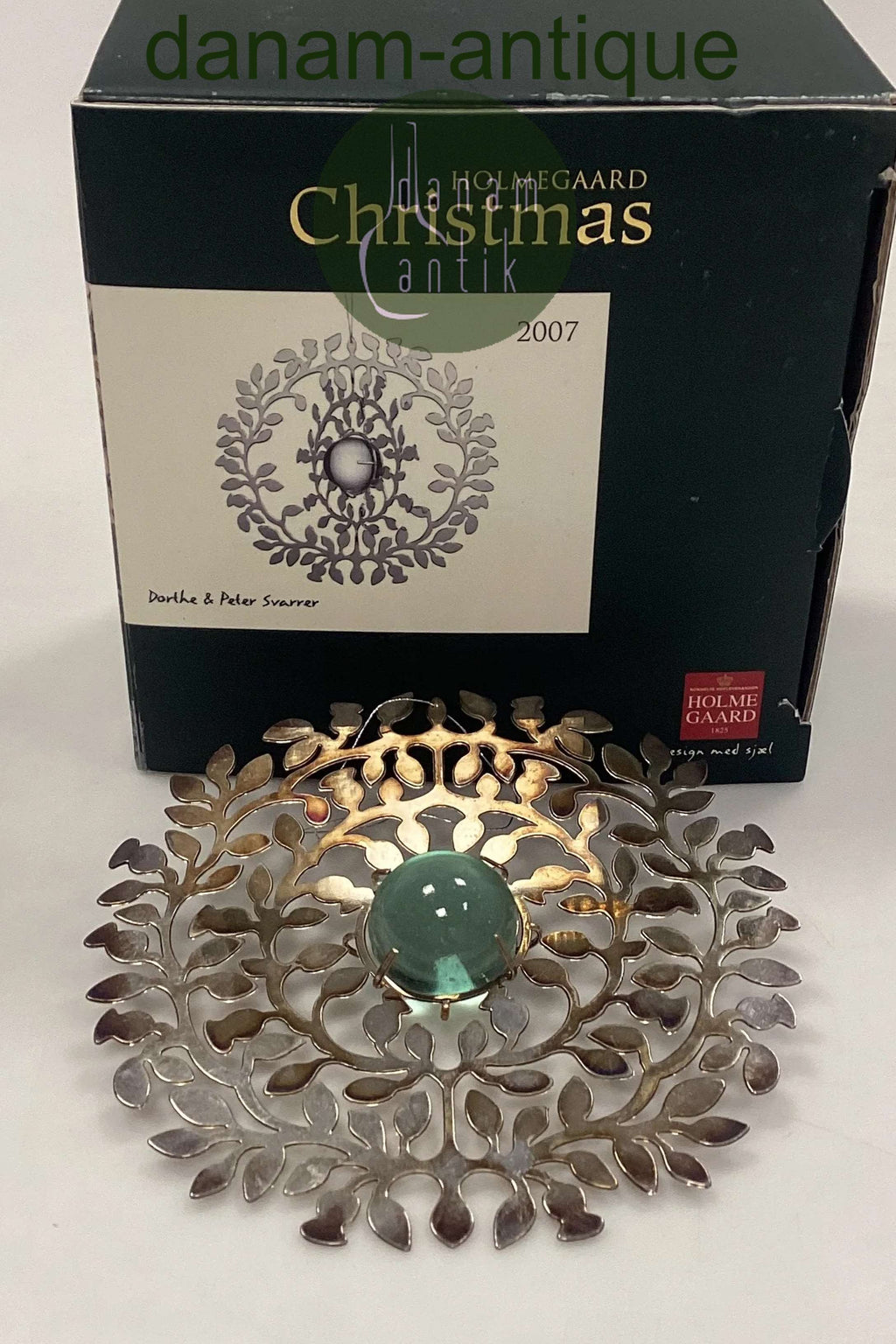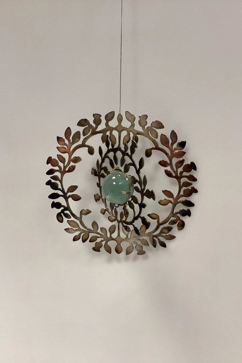 Holmegaard Christmas Juleophæng - Julefryd 2007. Metalornament i sølvfarvet med glaskugle i lyseblå. Den miderste del kan vrides til ønsket position. Designet af Dorthe og Peter Svarrer.