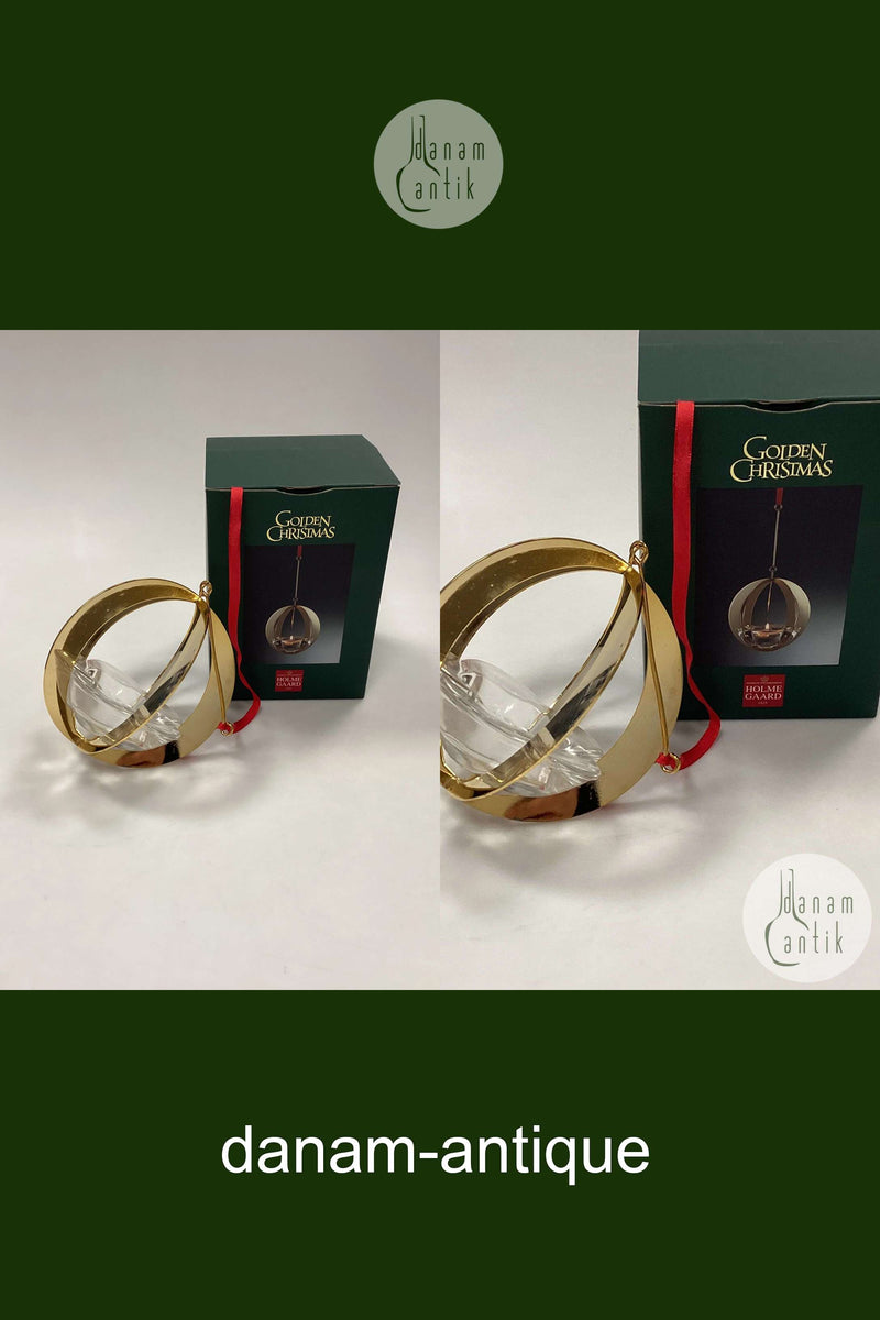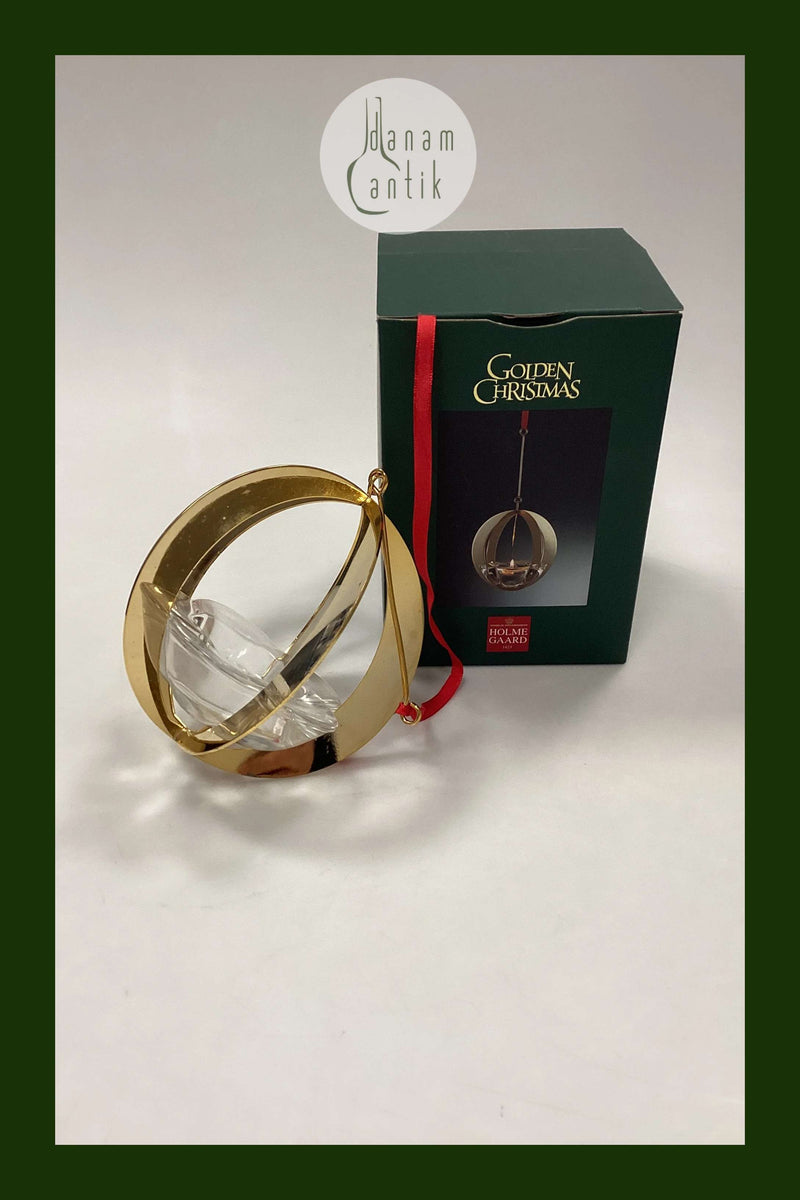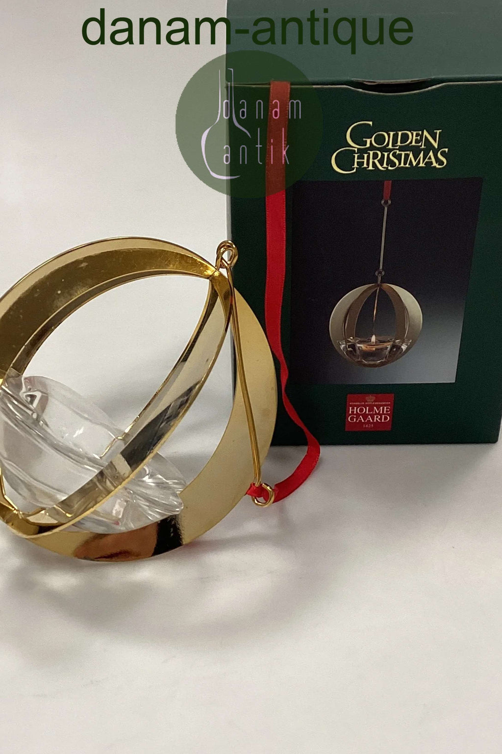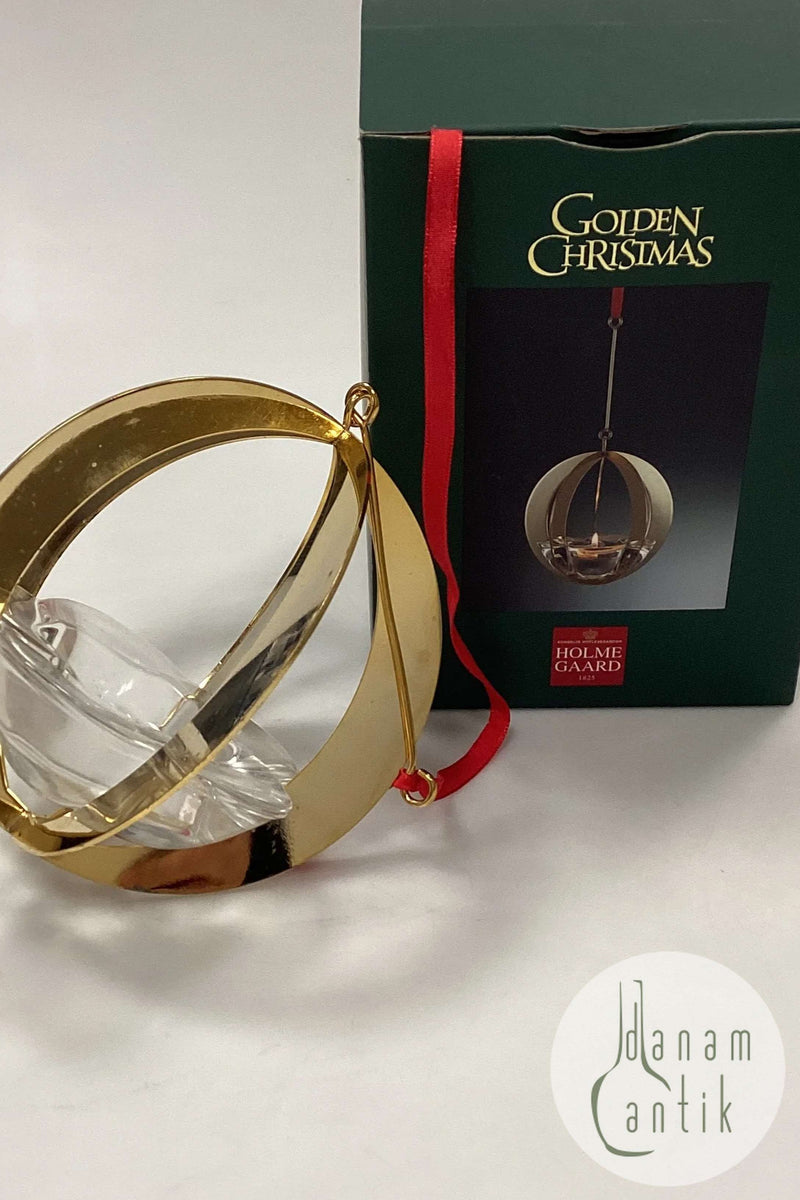 Holmegaard Golden Christmas Fyrfadslysetage i kugleophæng fra 2004. Designet af Jette Frölich. Måler 12 cm / 4,72 in.