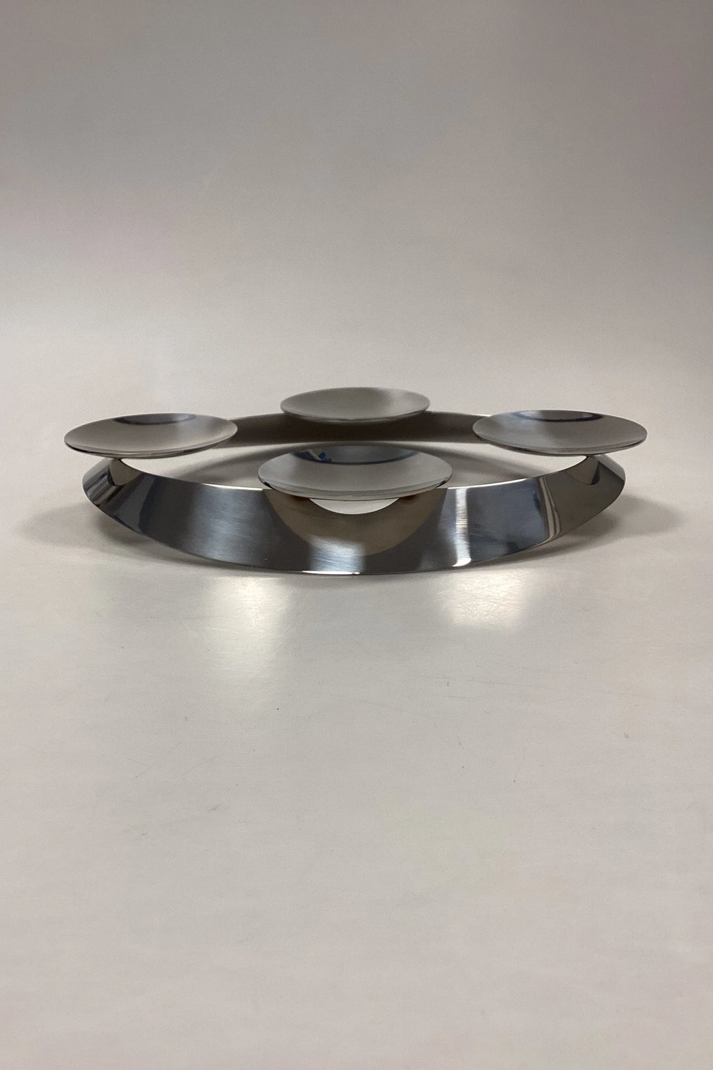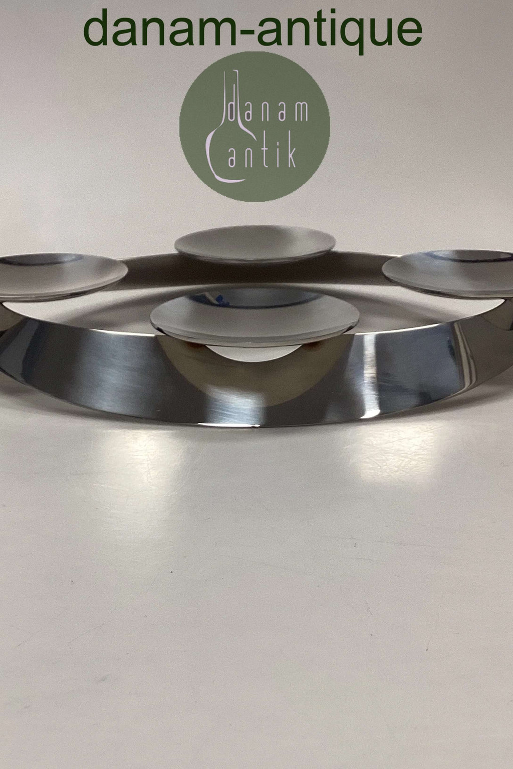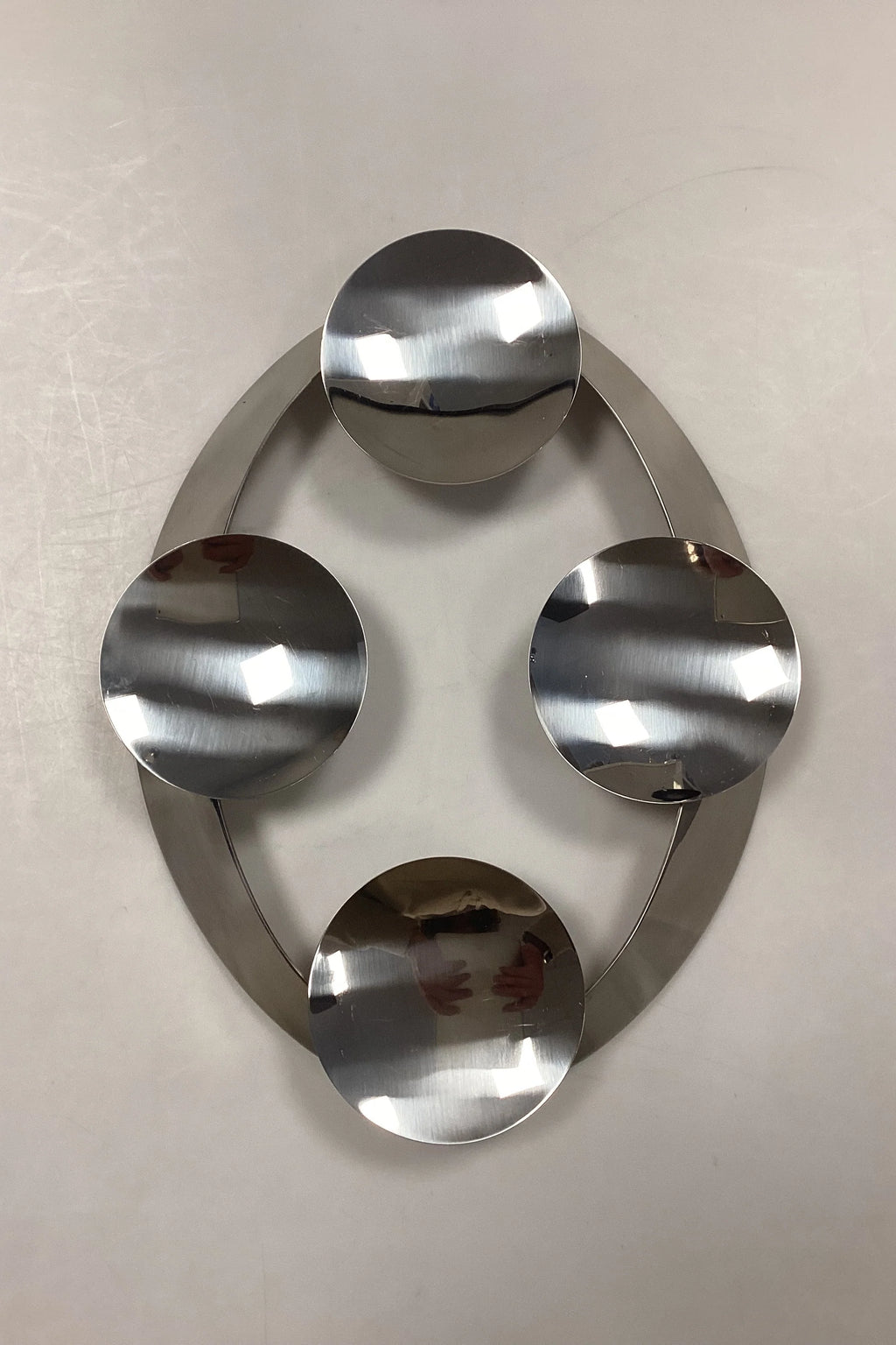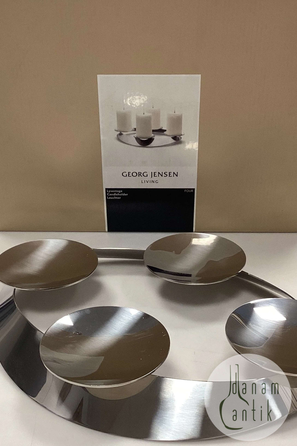 Georg Jensen Lysestage - Four 2010. Adventsstage i rustfrit stål til bloklys. Måler 32 cm x 24,5 cm / 12,5 in. x 9,64 in. Design: Maria Berntsen.