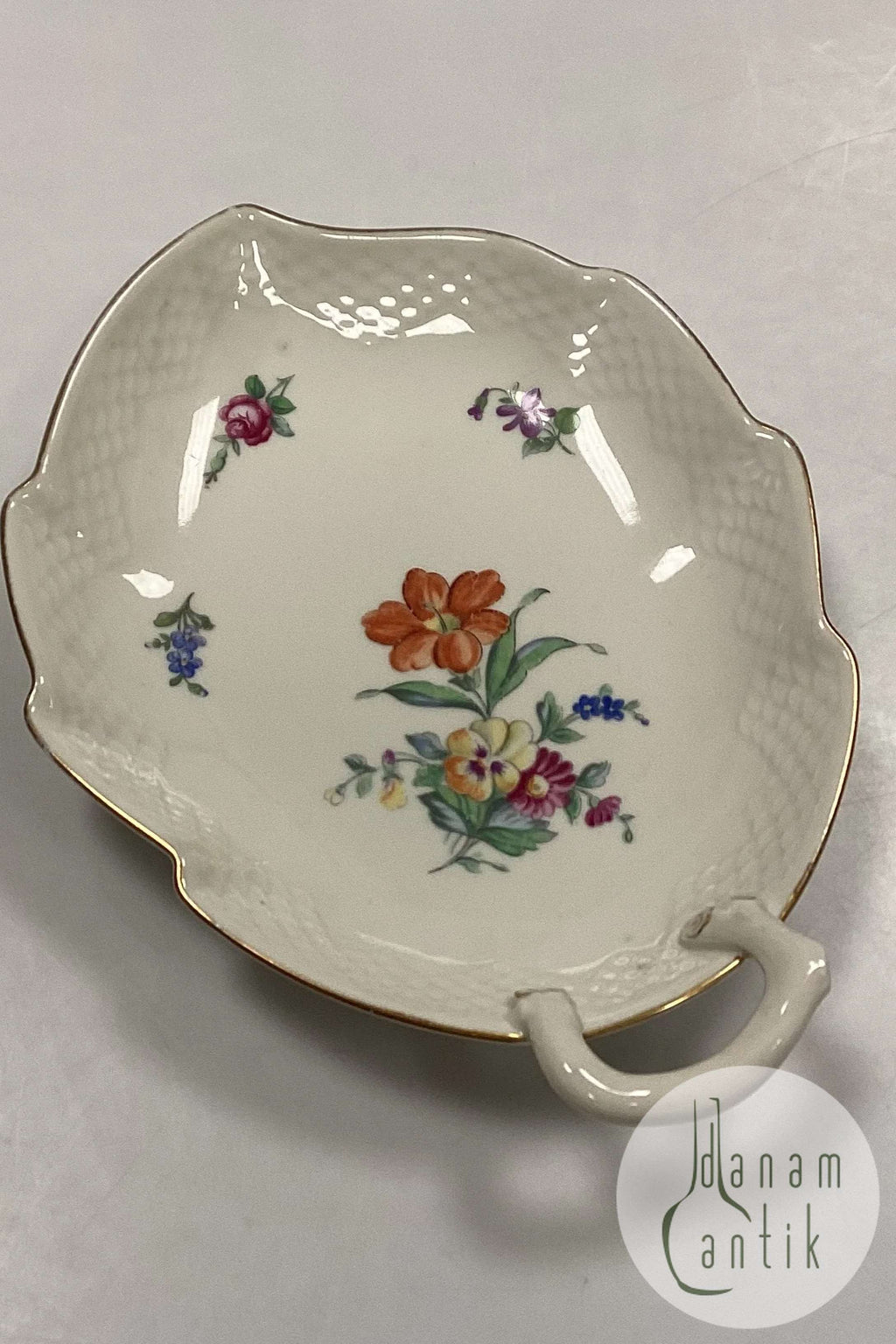 Bing og Grøndahl Saksisk Blomst, Creme Bladformet Fad No. 199.