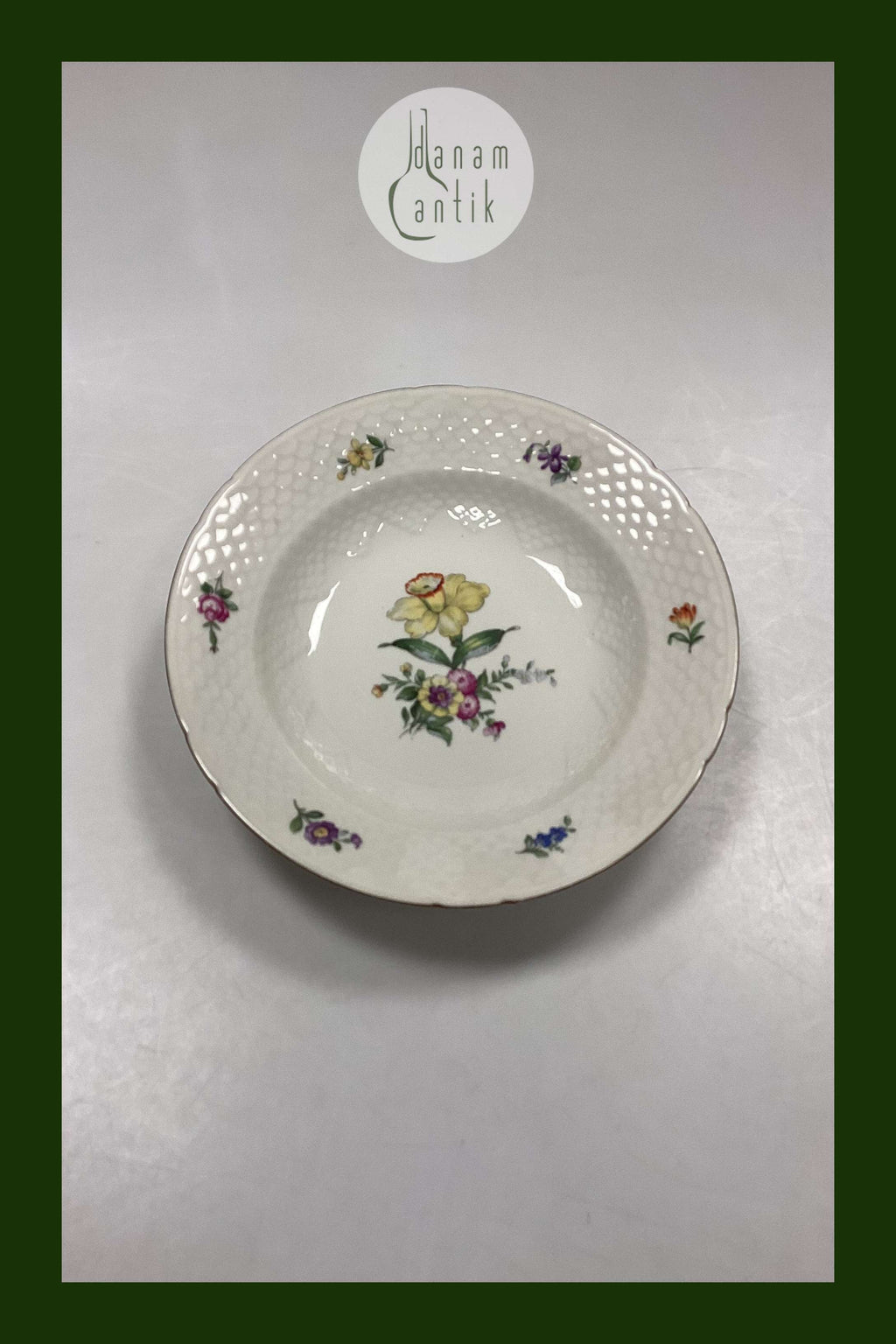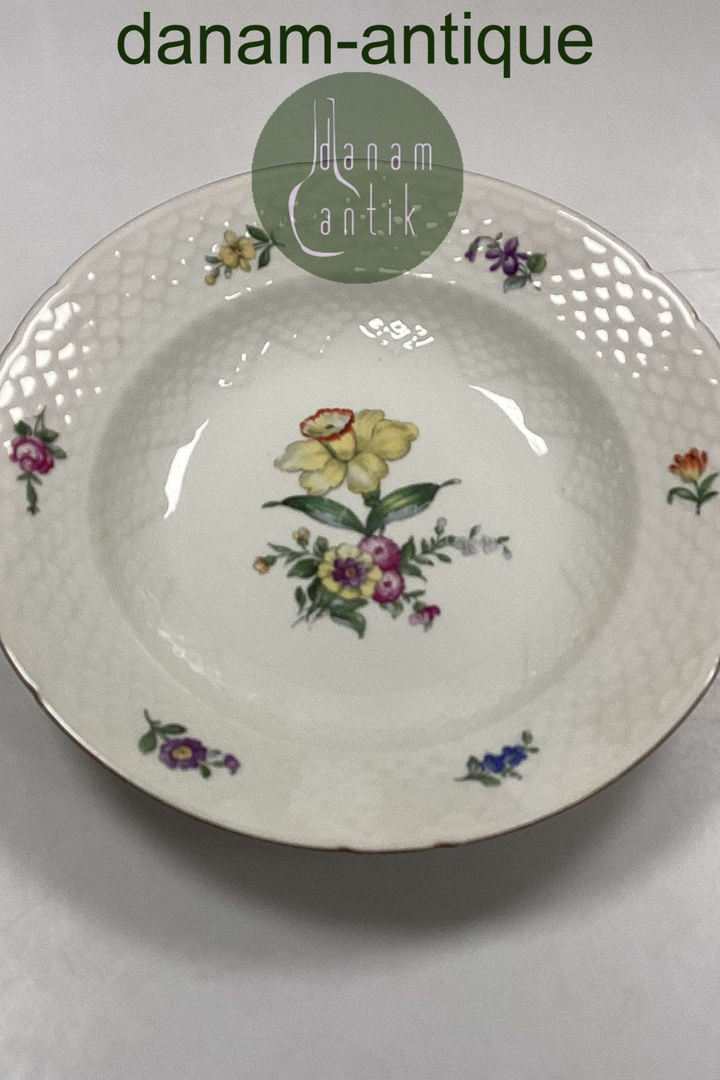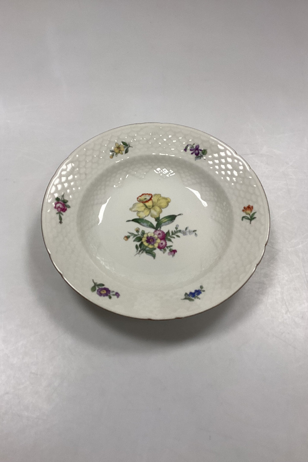 Bing og Grøndahl Saksisk Blomst, Creme Dyb Tallerken No. 22. Måler 24,5 cm / 9 41/64 in.