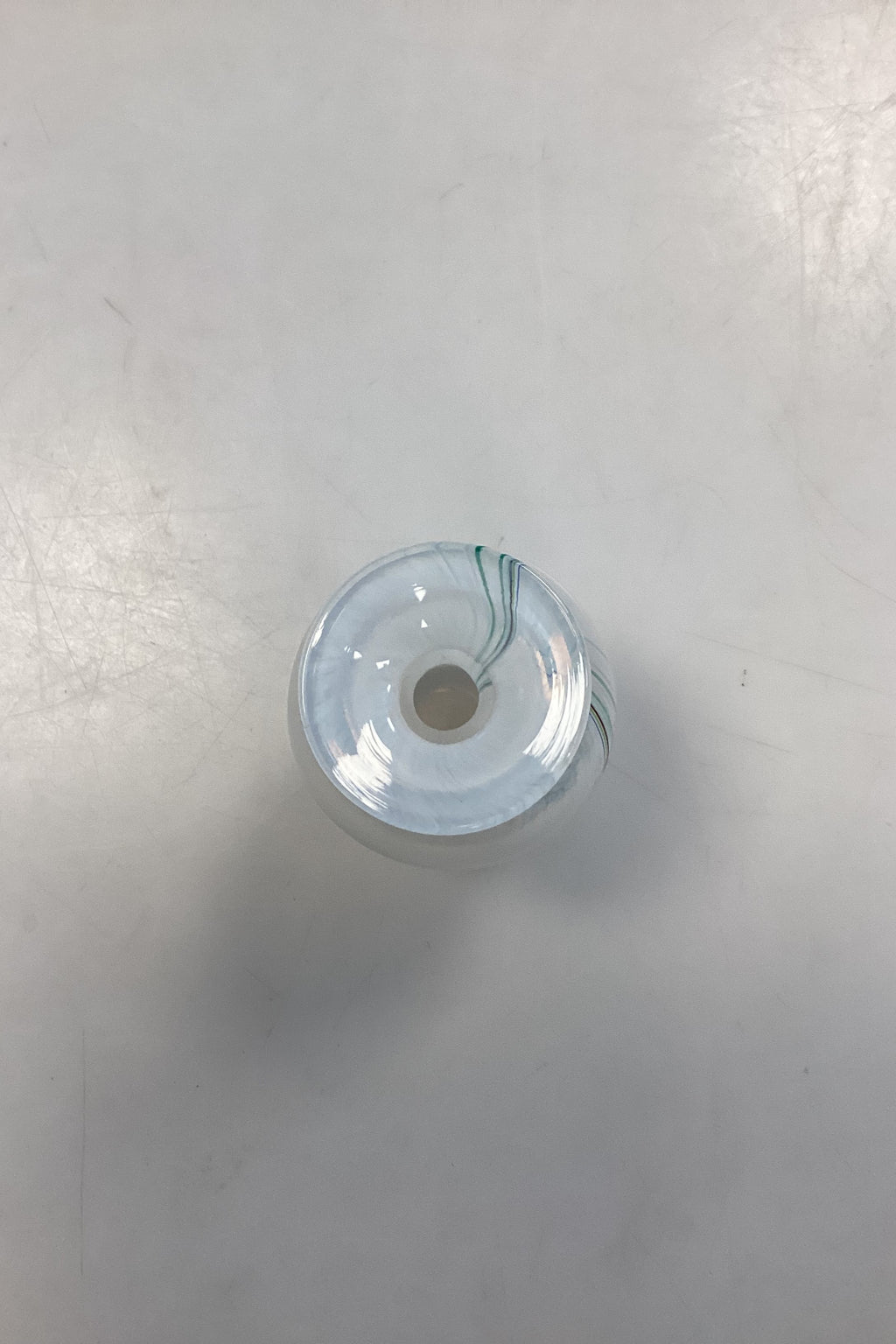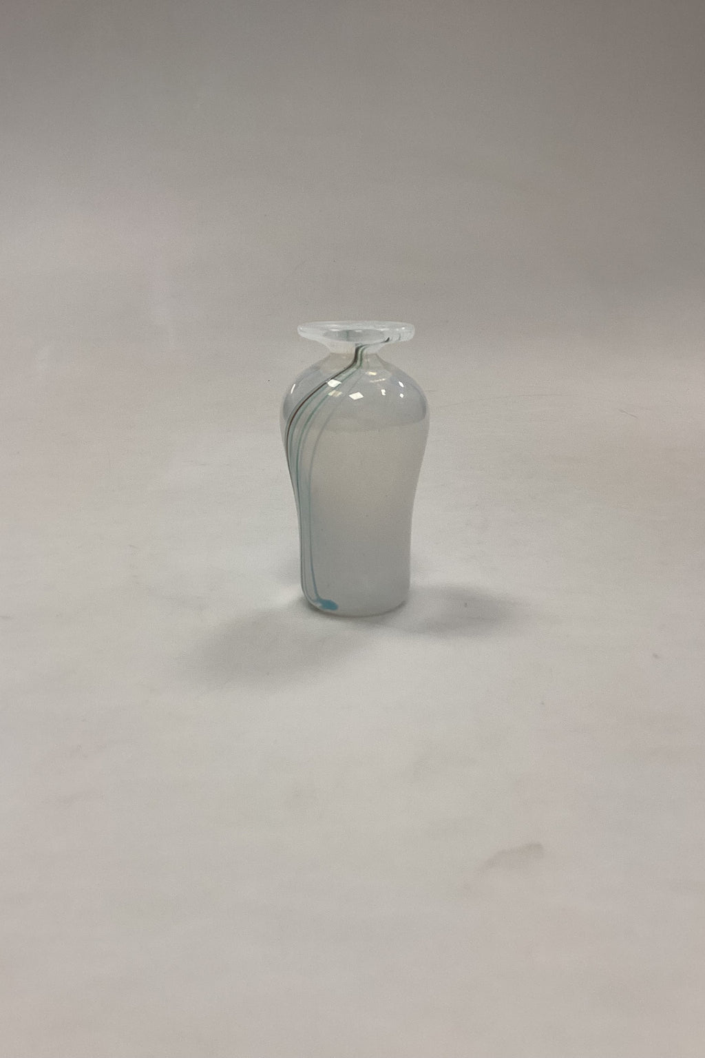 Kosta Boda Network Vase No. 48383. Designet af Bertil Vallien. Miniaturevase i mundblæst mælkehvidt glas med stribet farvedekoration. Signeret: Kosta Boda B. Vallien 48383.