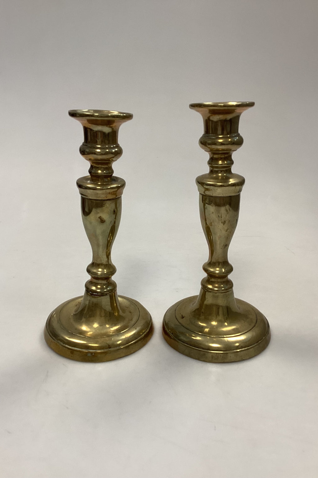 Antikke høje Lysestager i Messing, et par. Lettere slitage, buler og skævheder.