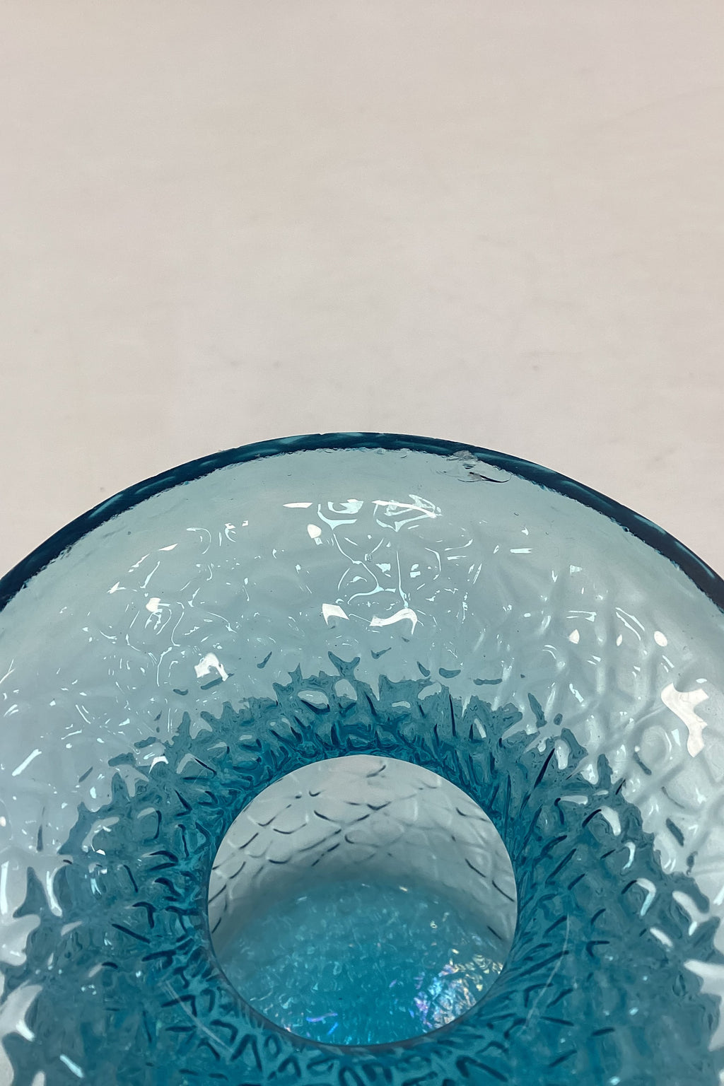 Turkisblå Blomsterløg Vase Holmegaard / Kastrup / Fyens Glasværk. Ruflet optik. Egnet til hyacinter, tulipaner etc. Sjælden farve. Små afslag på kanten, se fotos.
