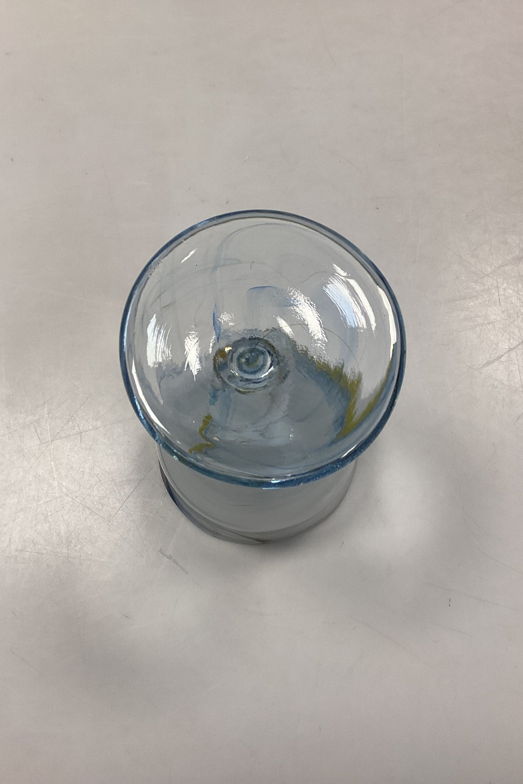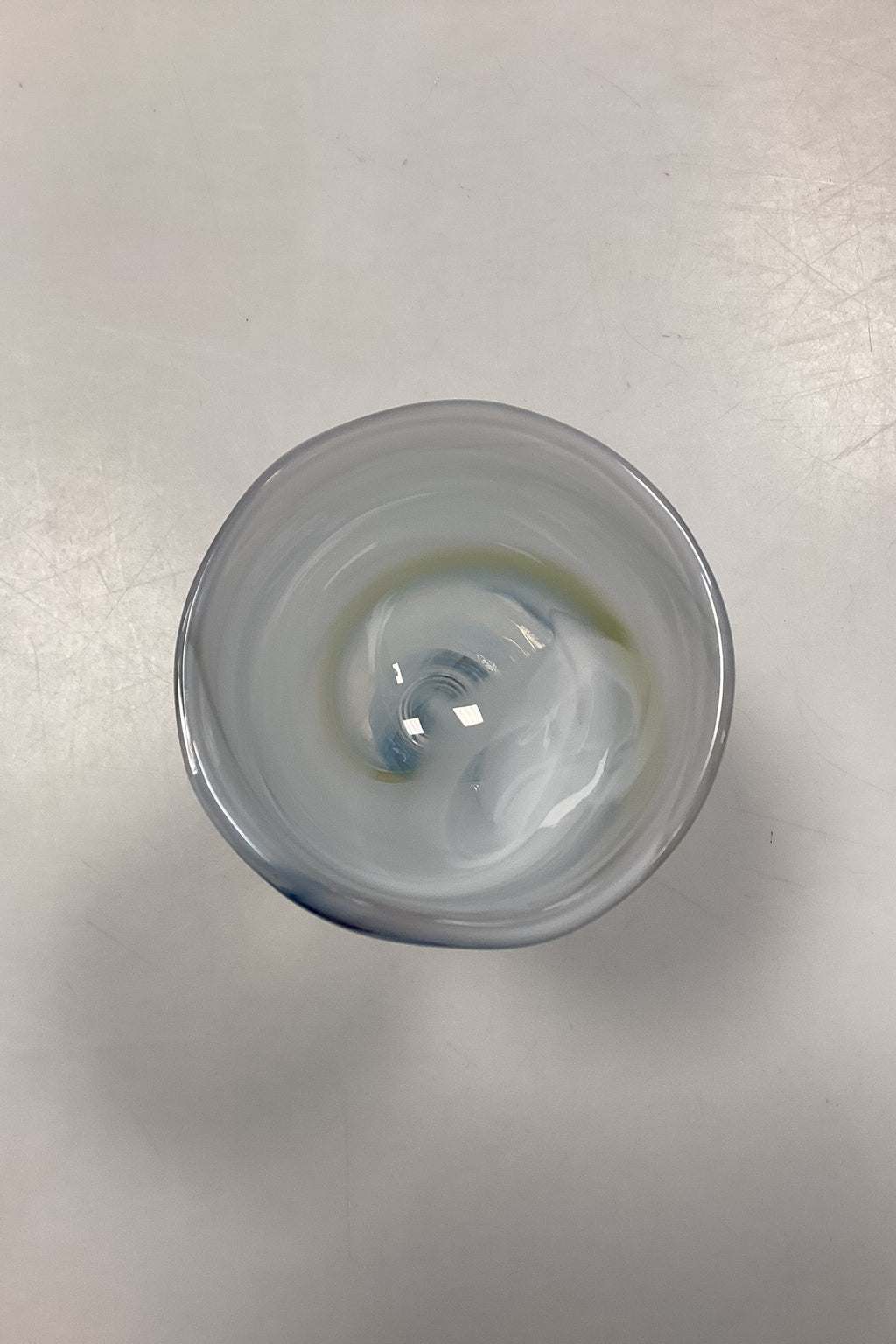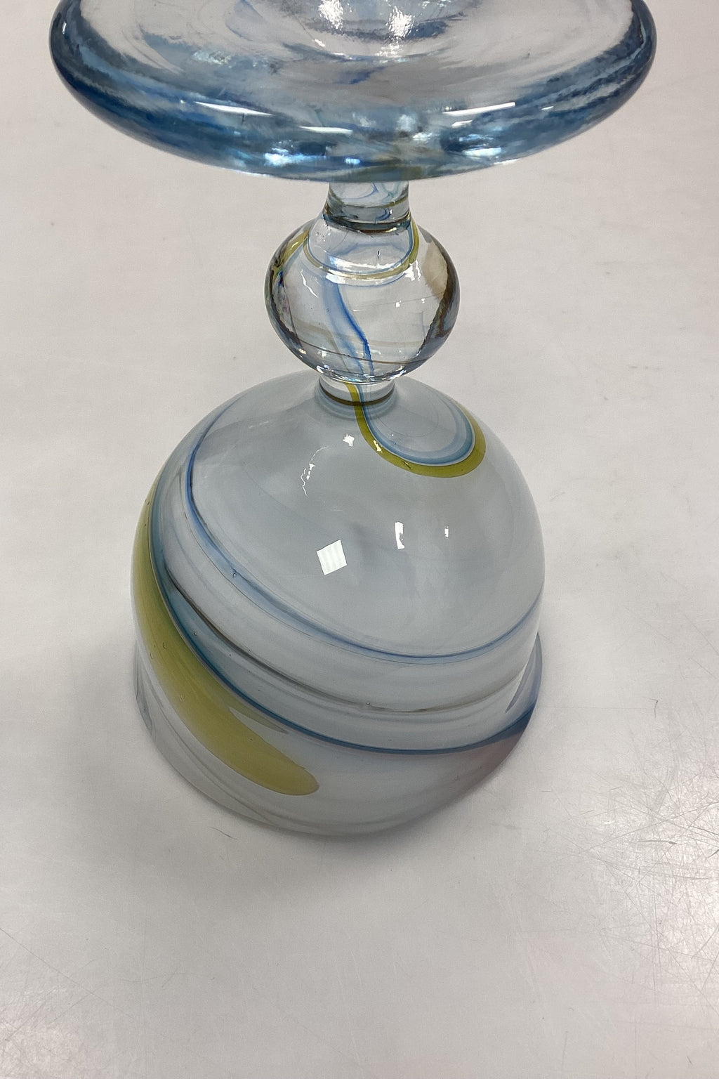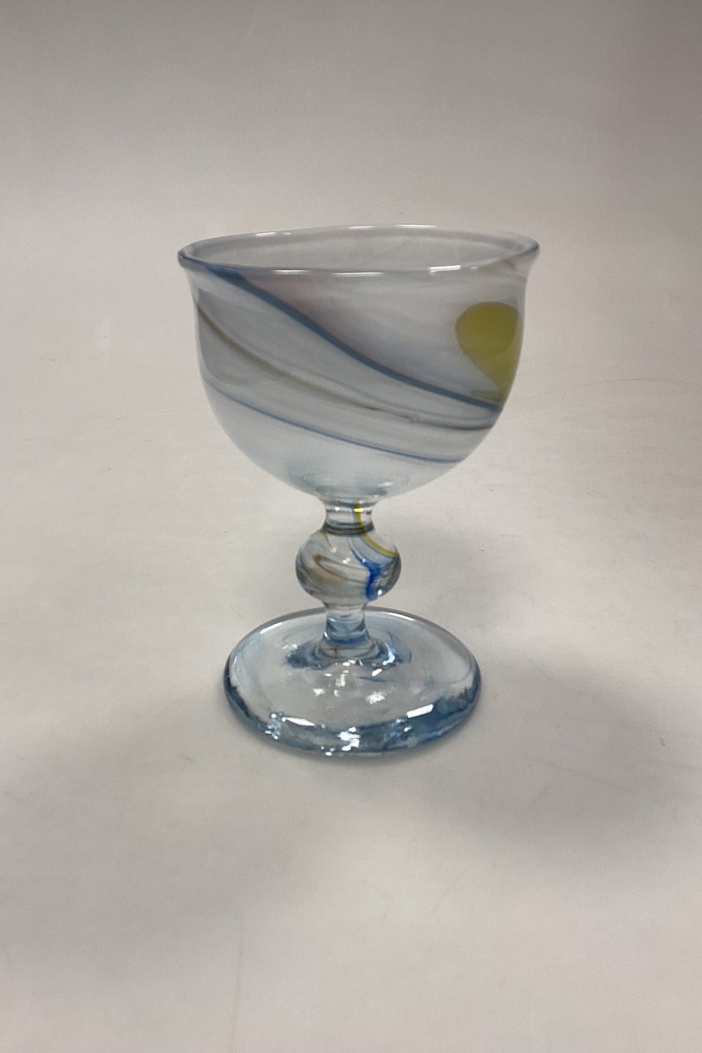 Holmegaard Cascade Vinglas. Designet af Per Lütken. Glasset er opalhvidt øverst, med multifarvede gule og blå toner. Signeret HG4 PL i bunden.