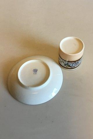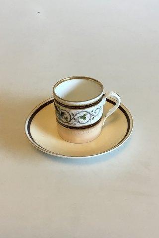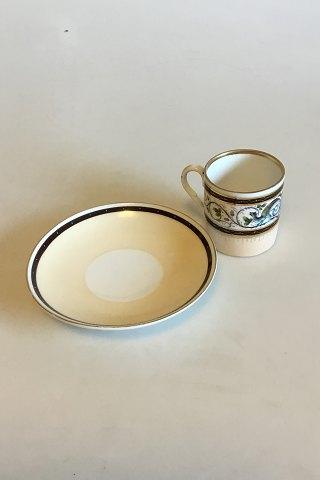 Carl Tielsch / Altwasser Mokkakop dekoreret med blomsterfrise med drager og guld. Fra 1875-1909. Måler kop: 5,6 cm x 5,4 cm dia. Underkop: 12,5 cm dia.