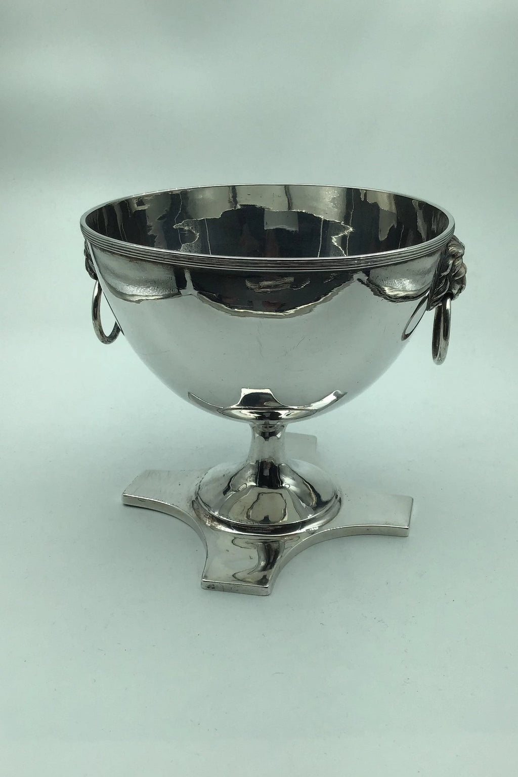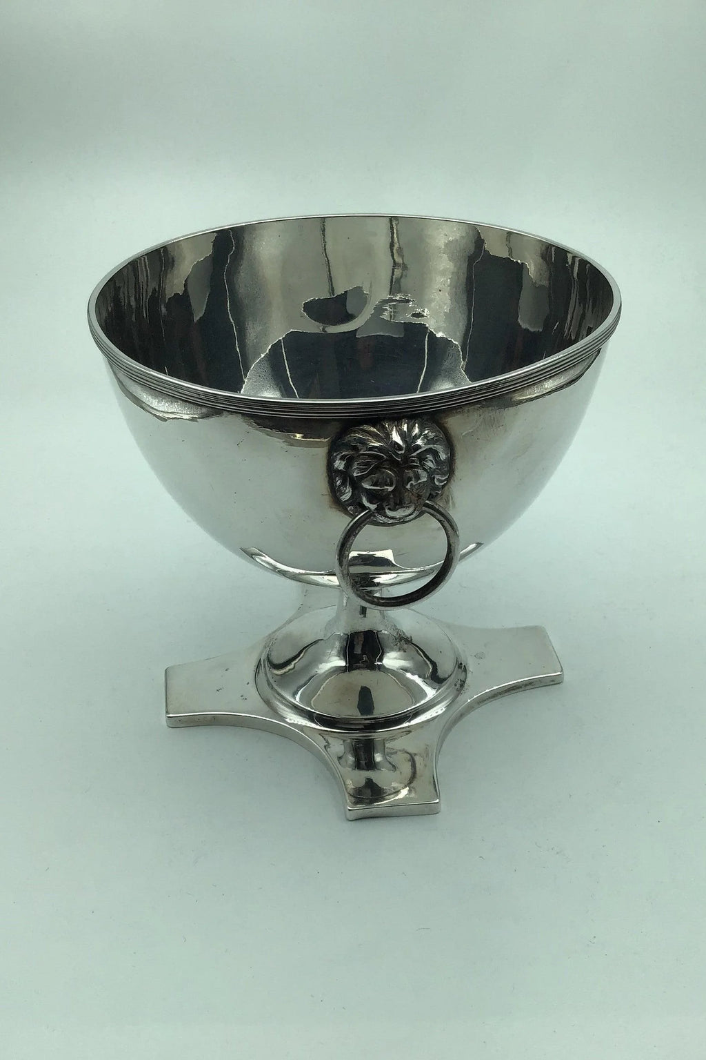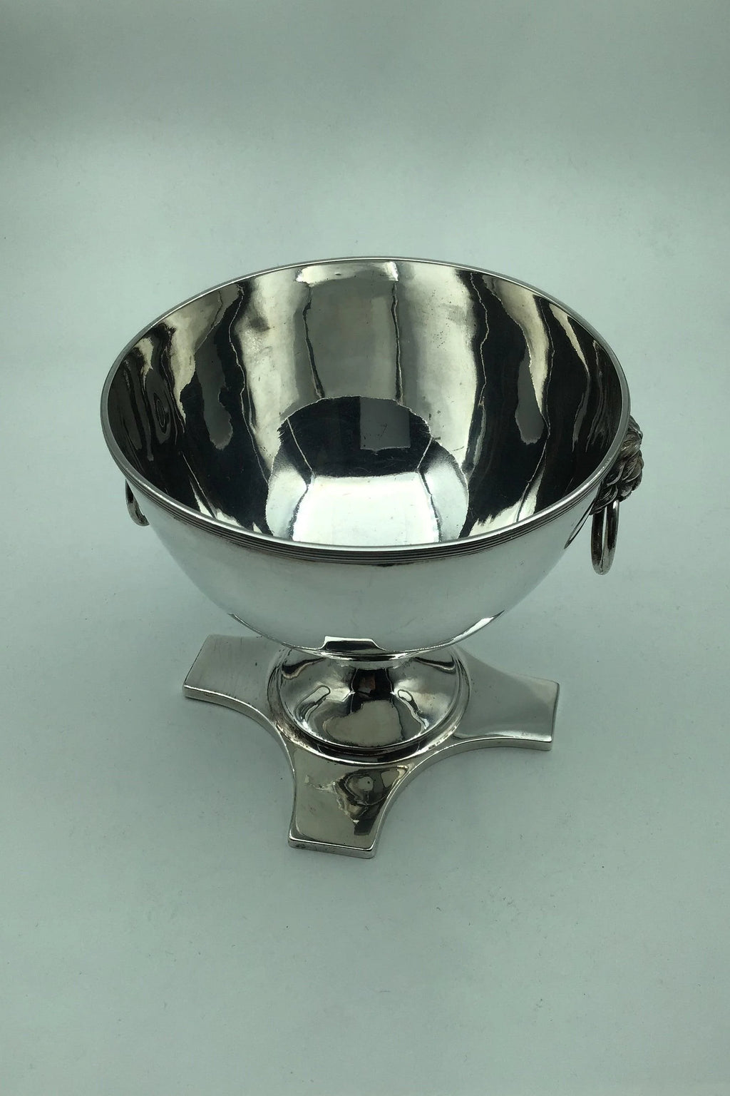 Dansk Empire Sølv Konfektskål, Rund skål på korsformet fodstykke, løvehoved-hanke i siden Måler H 12 cm Diam 13 cm Vægt 273.2 gr / 9.64 oz (Gravering)