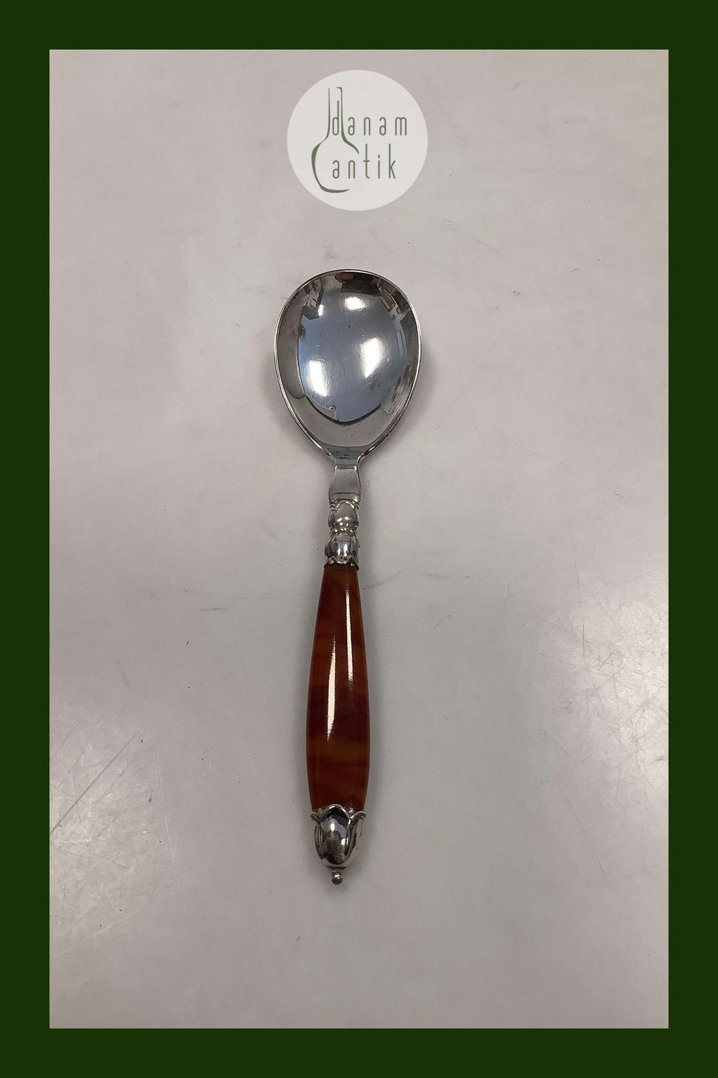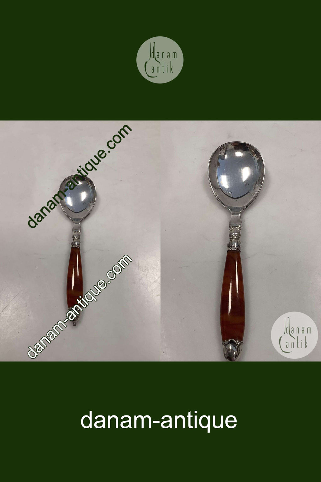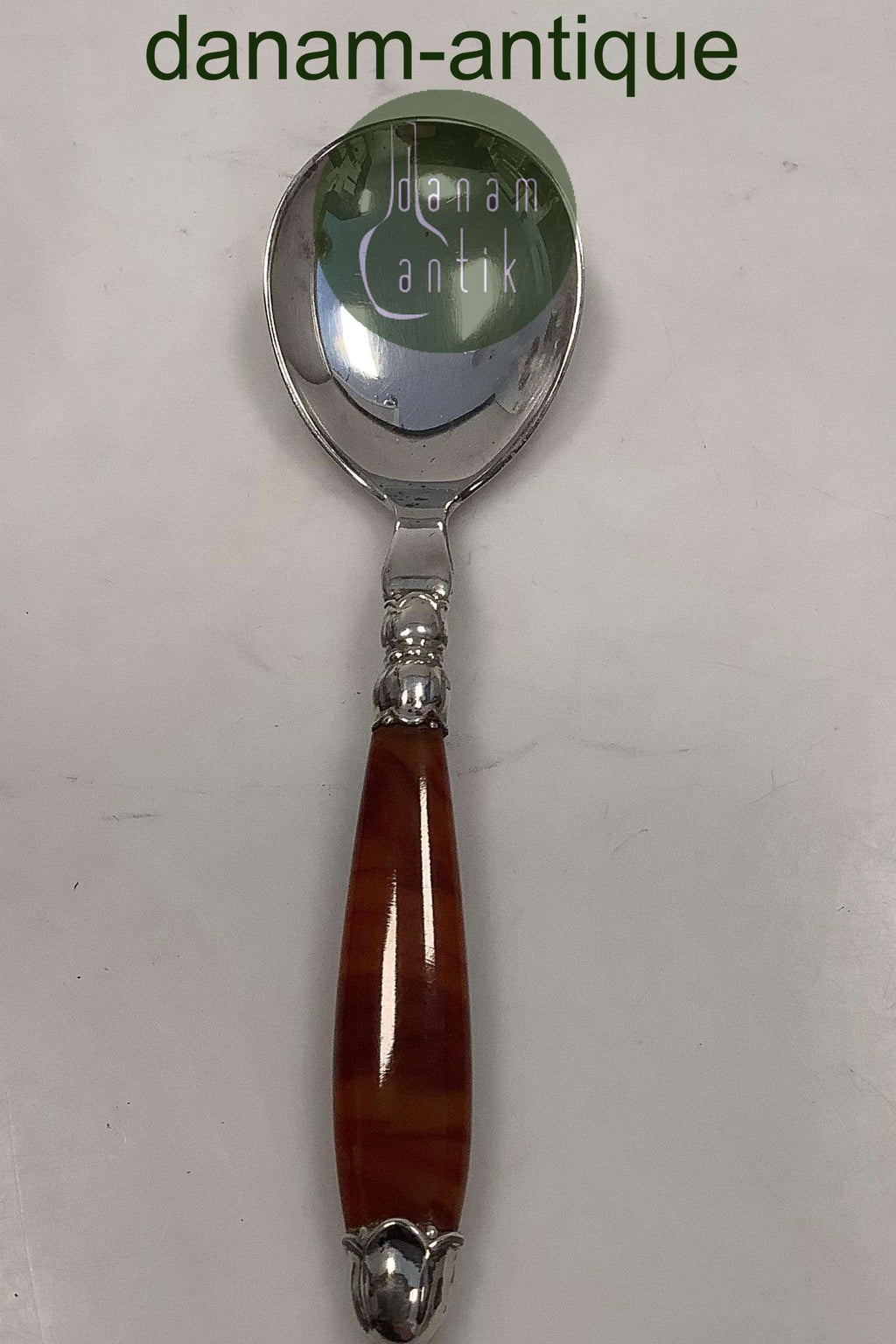 Dansk Ornamental Servingsske med skaft af Immitations Rav