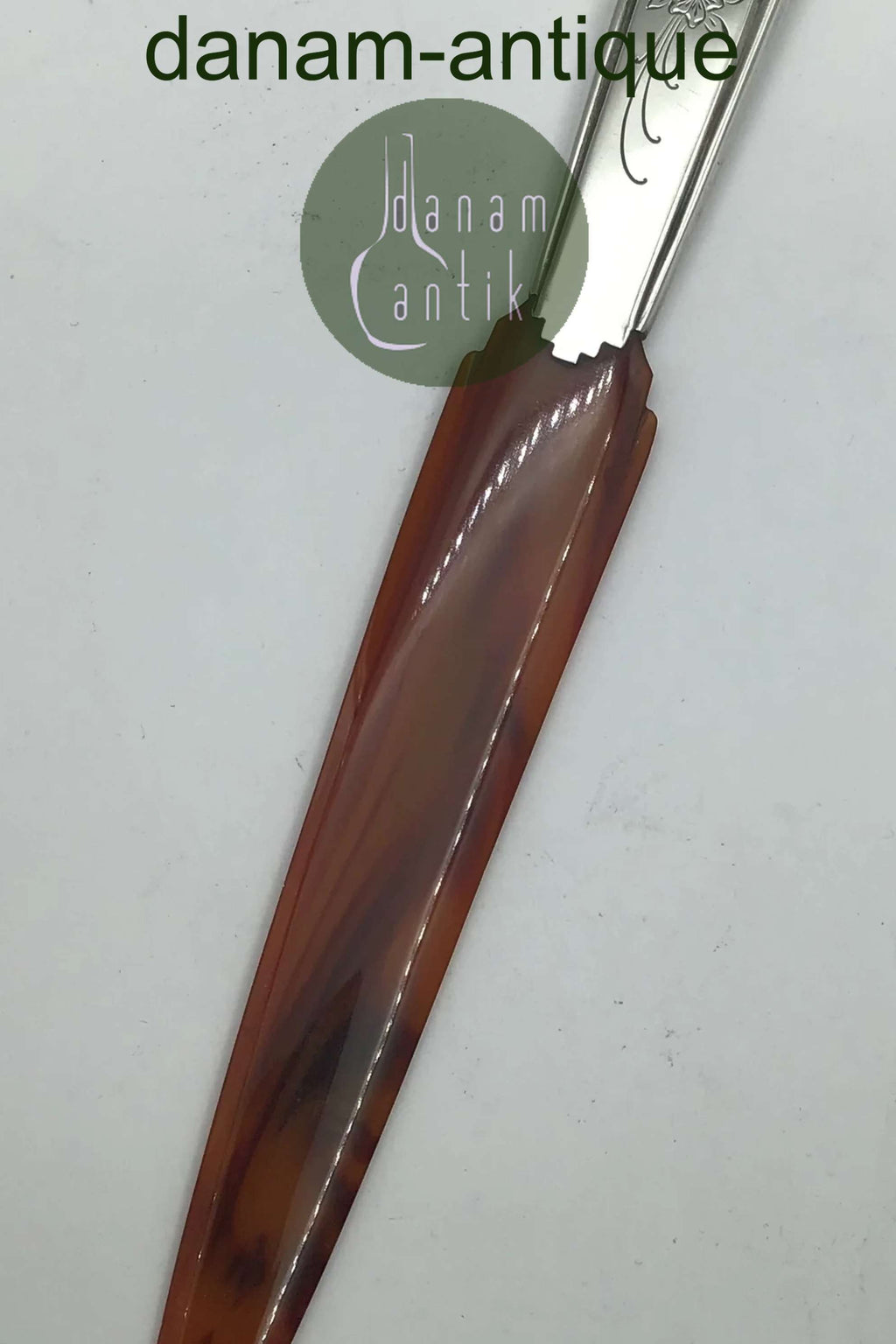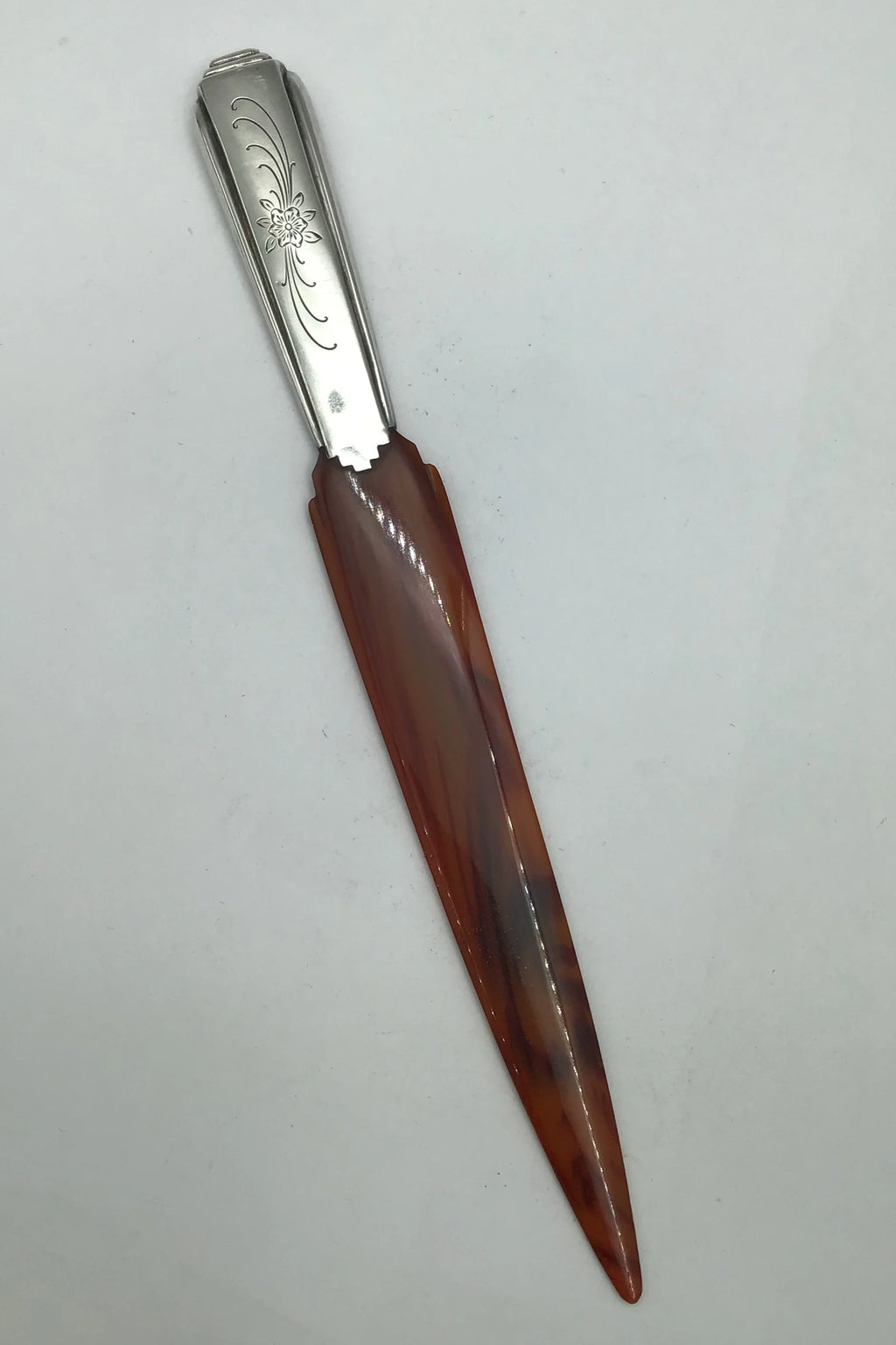 Dansk Sølv Brevkniv (Imiteret Rav) Måler 23.5 cm (9.25 inch)