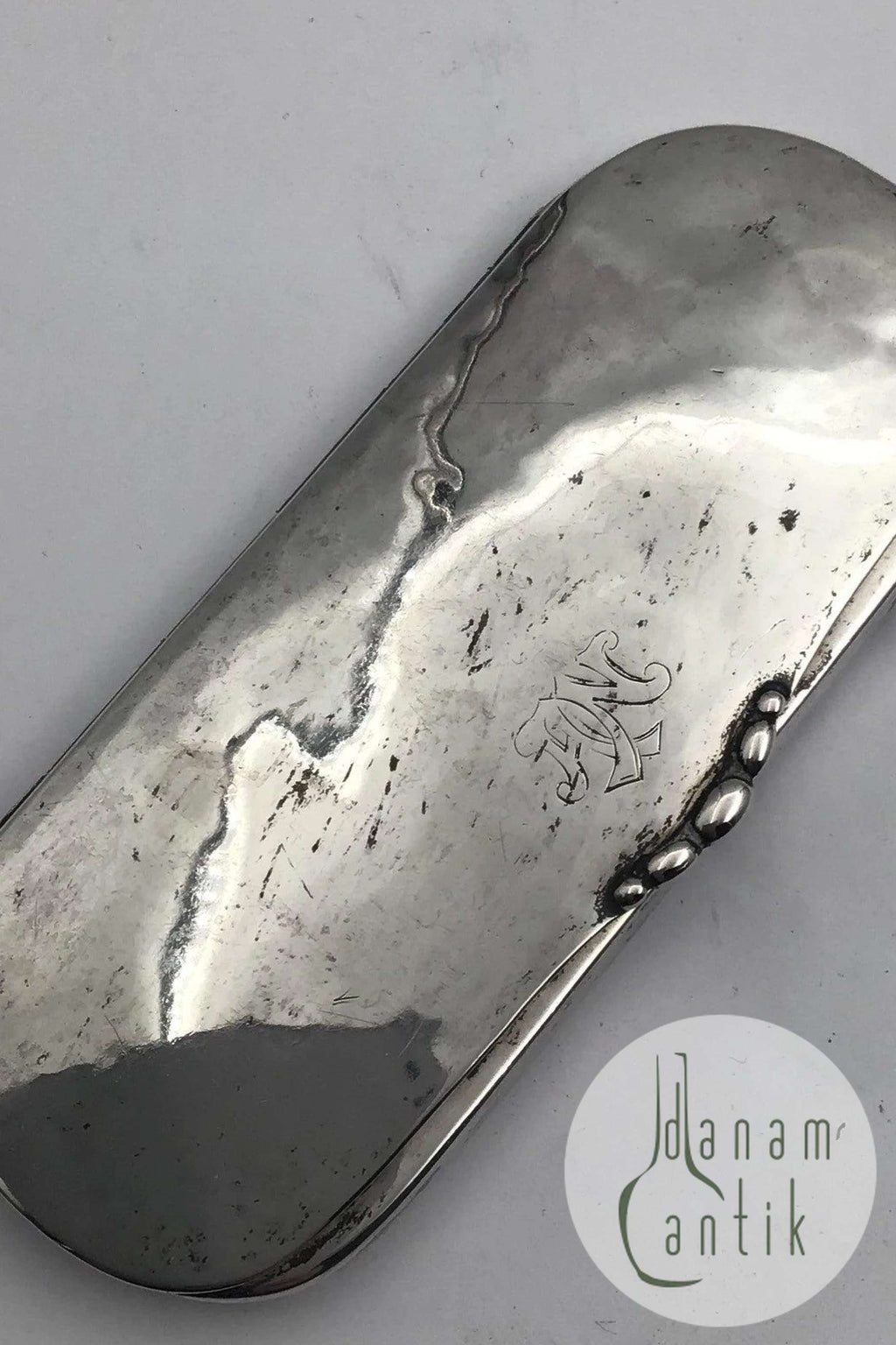 Dansk Sølv Brille Etui (1925) Måler 11.8 cm x 4.8 cm x 1.4 cm (4.65 inch x 1.88 inch x 0,55 inch) Vægt 76 gr (2.68 oz) (Graveret / Brugsspor)