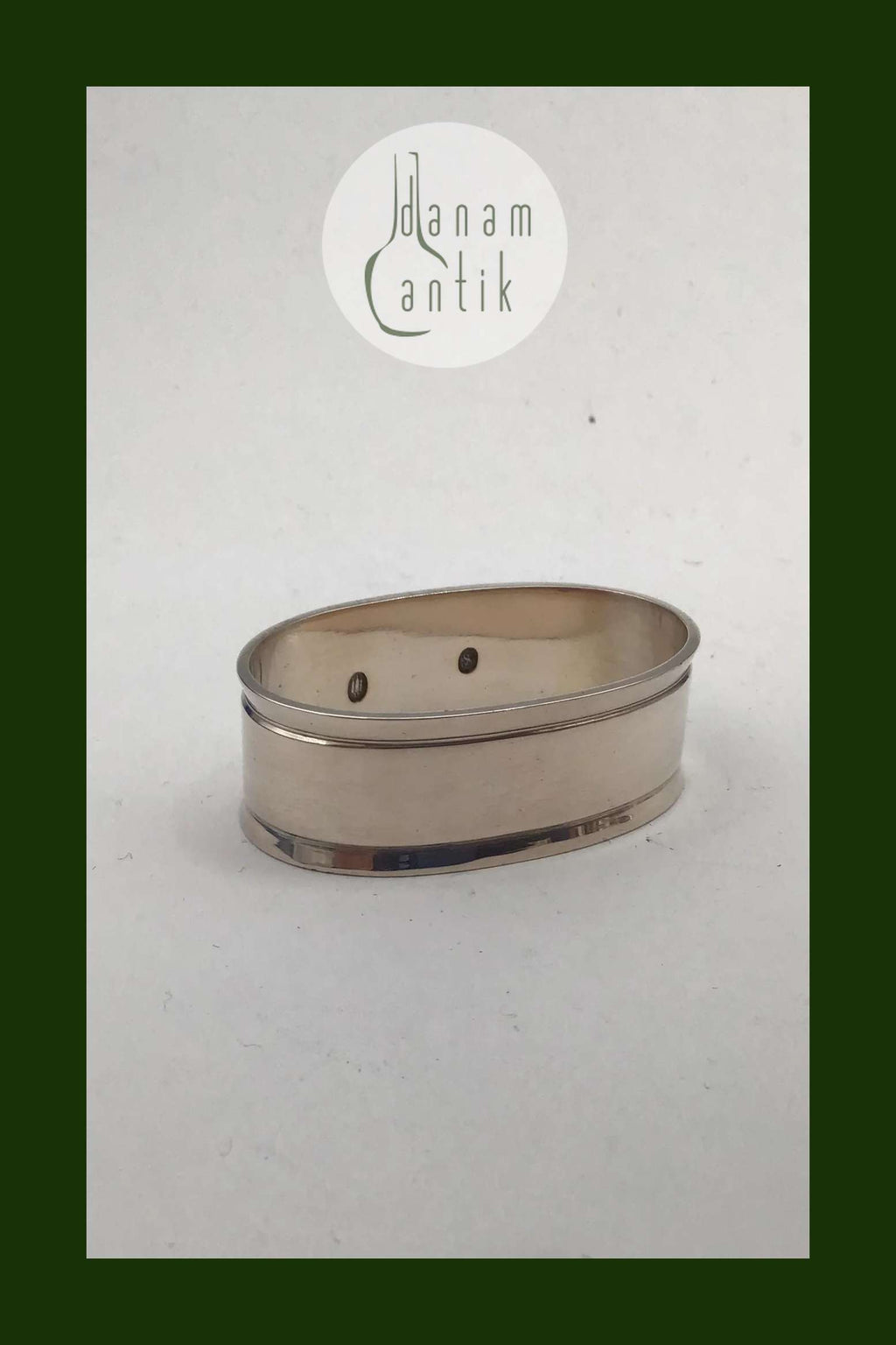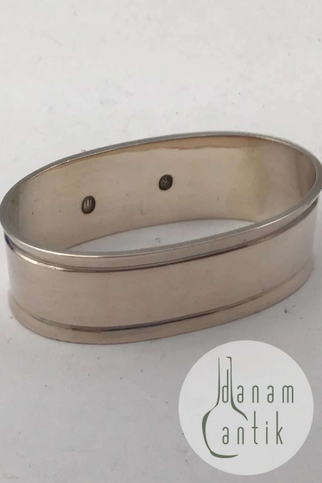 Dansk Sølv Servietring Måler 5.0 cm x 2.8 cm (1.96 inch x 1.10 inch) Bredde 1.6 cm (0.62 inch) Vægt 19.3 gr. (0.68 oz)