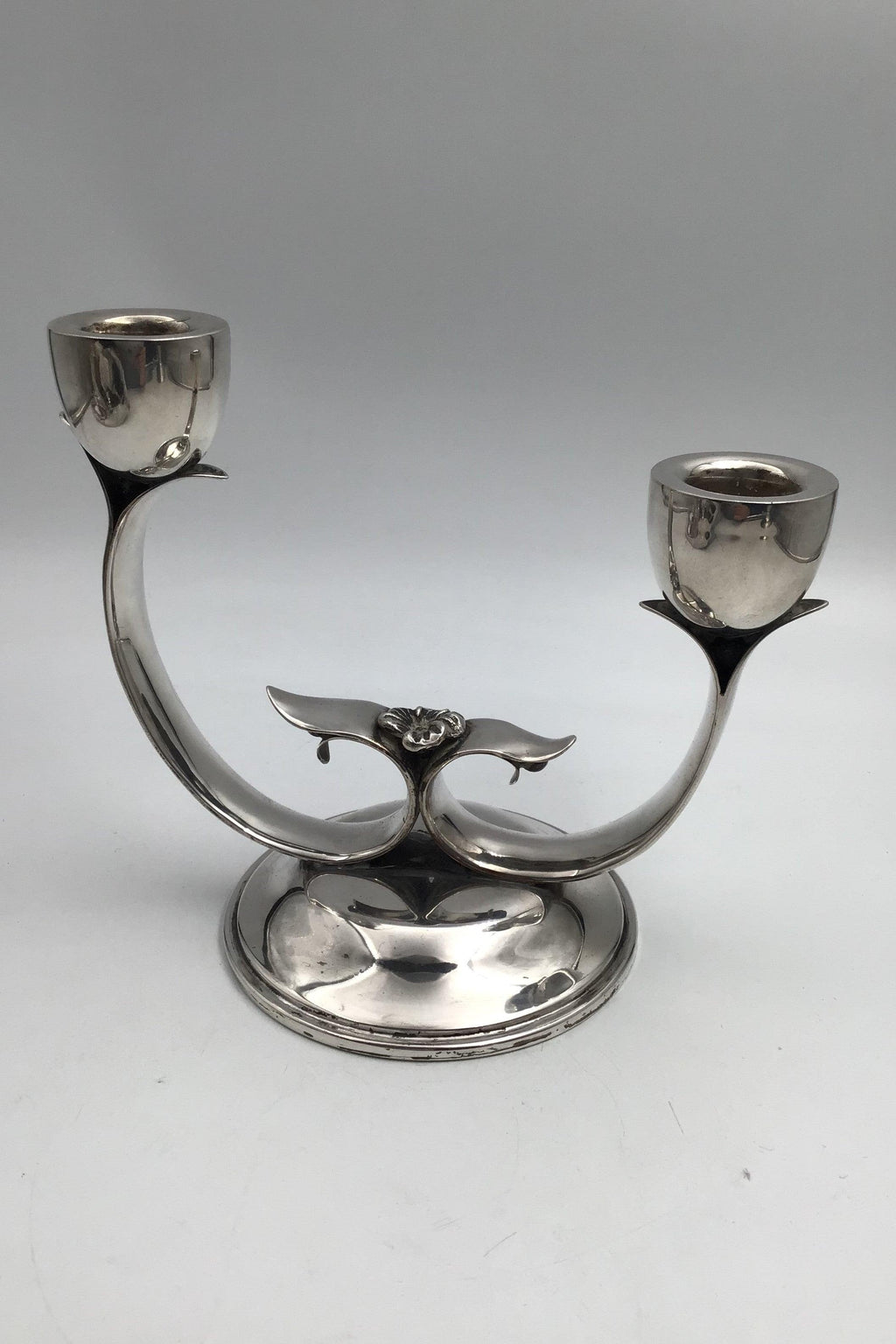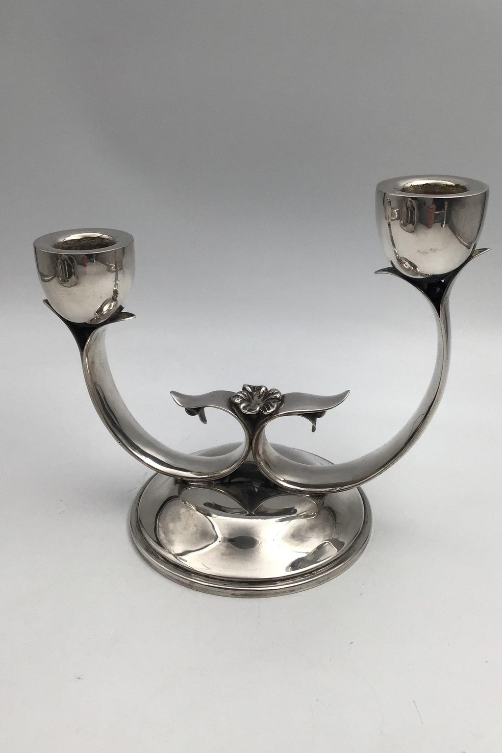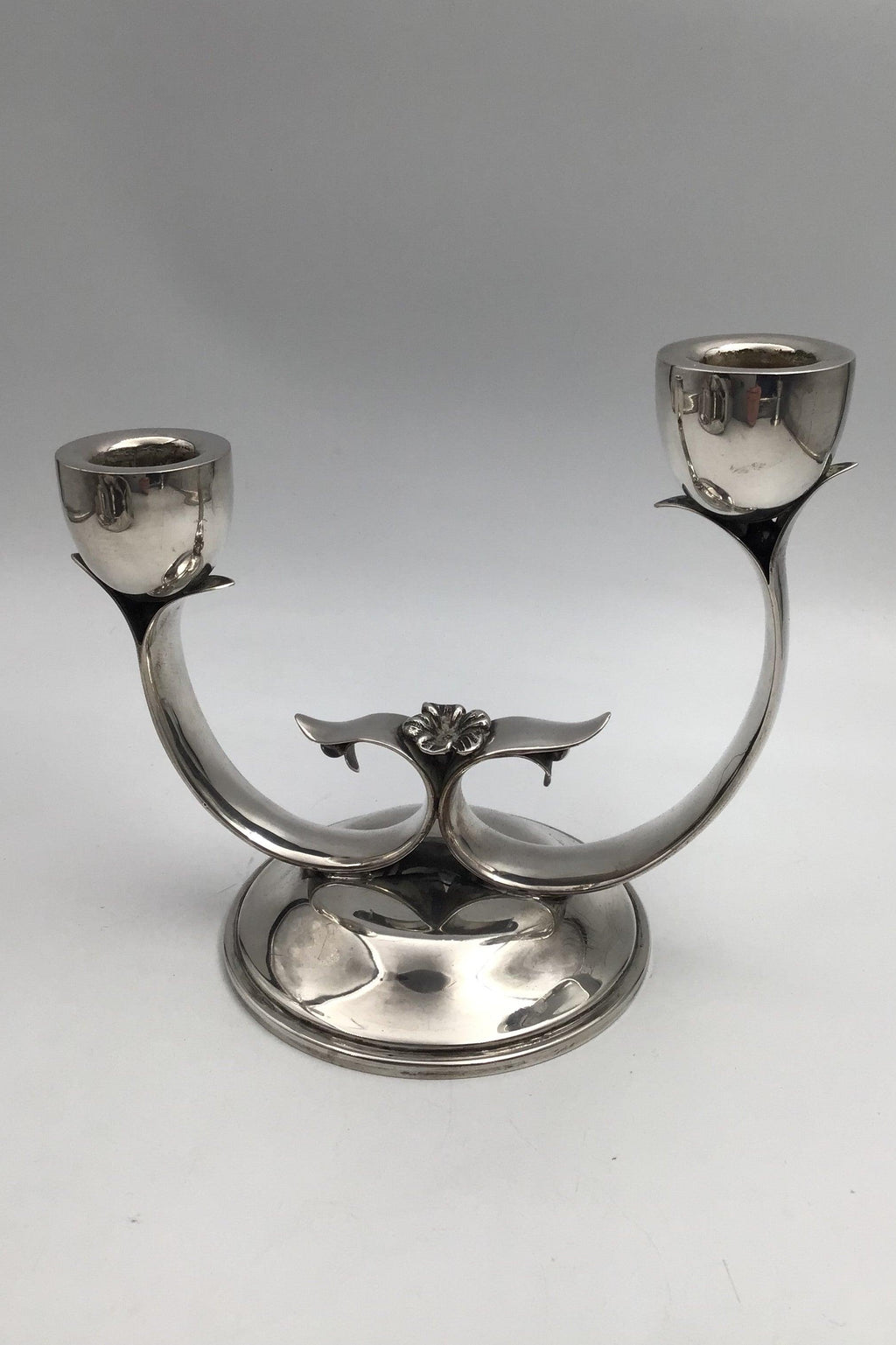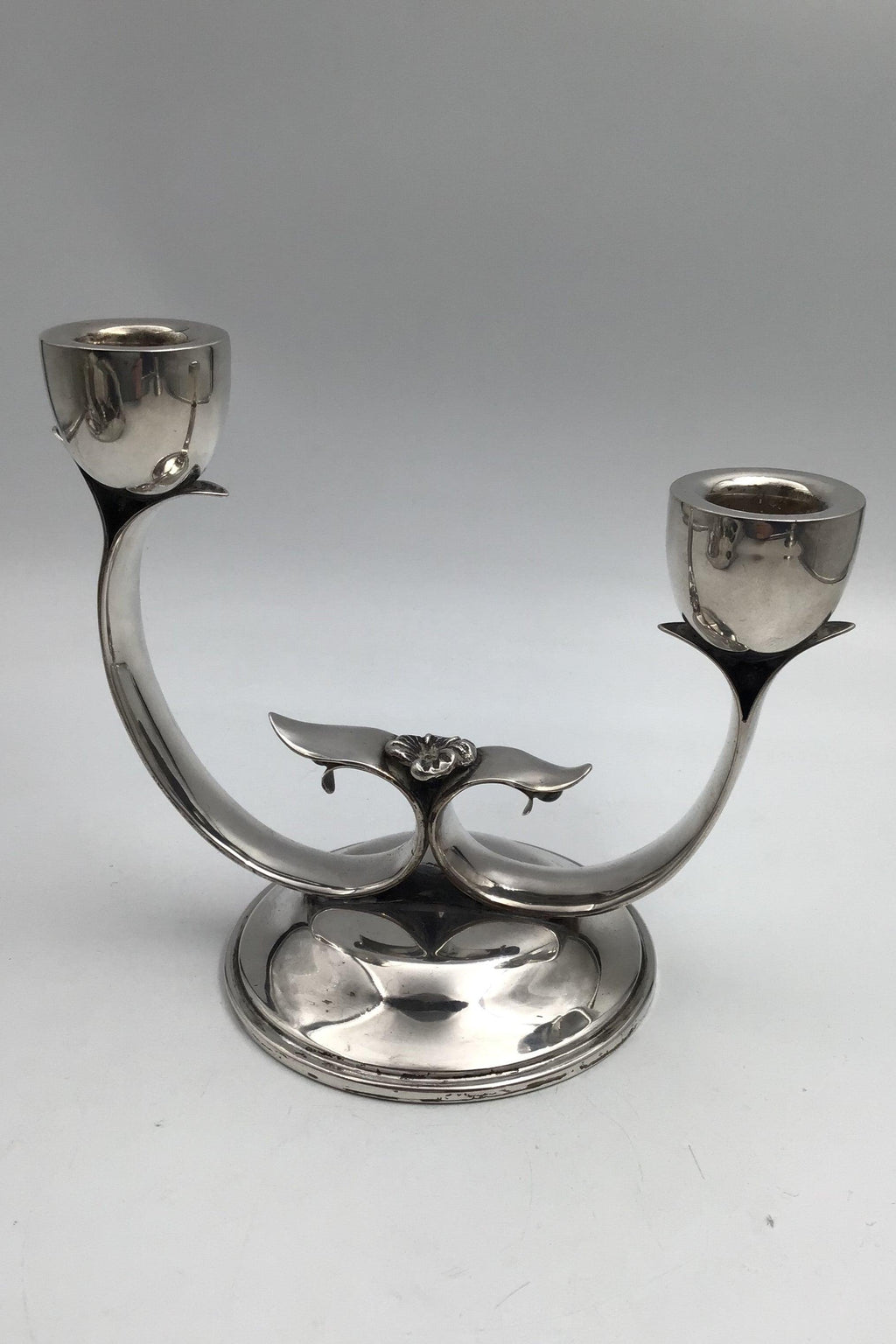 Dansk? Sølv To-armet Lysestage Måler H 15.5 cm (6.10 inch) Diam 18 cm (7.08 inch) Vægt 348 gr (12.27 oz)