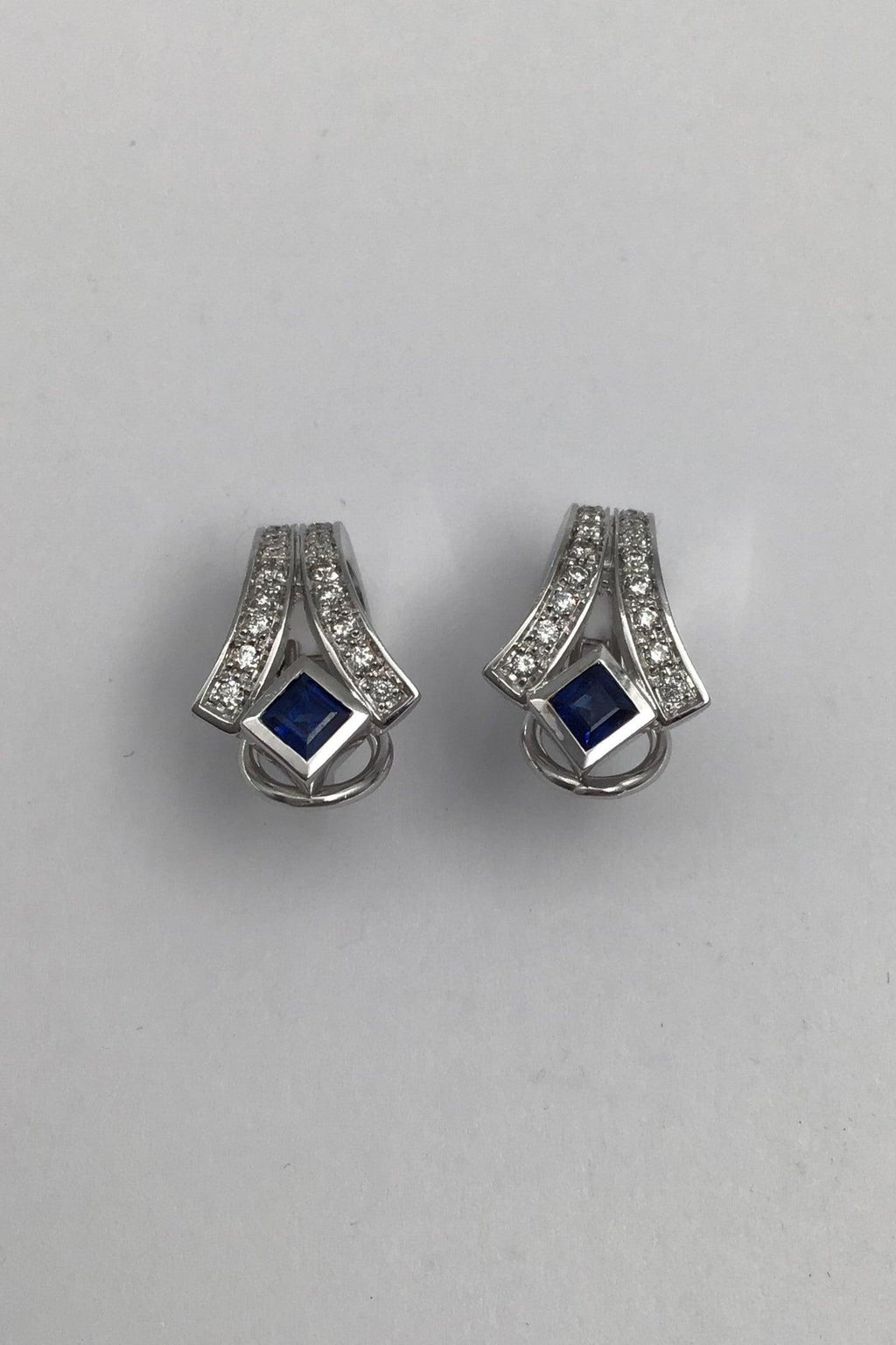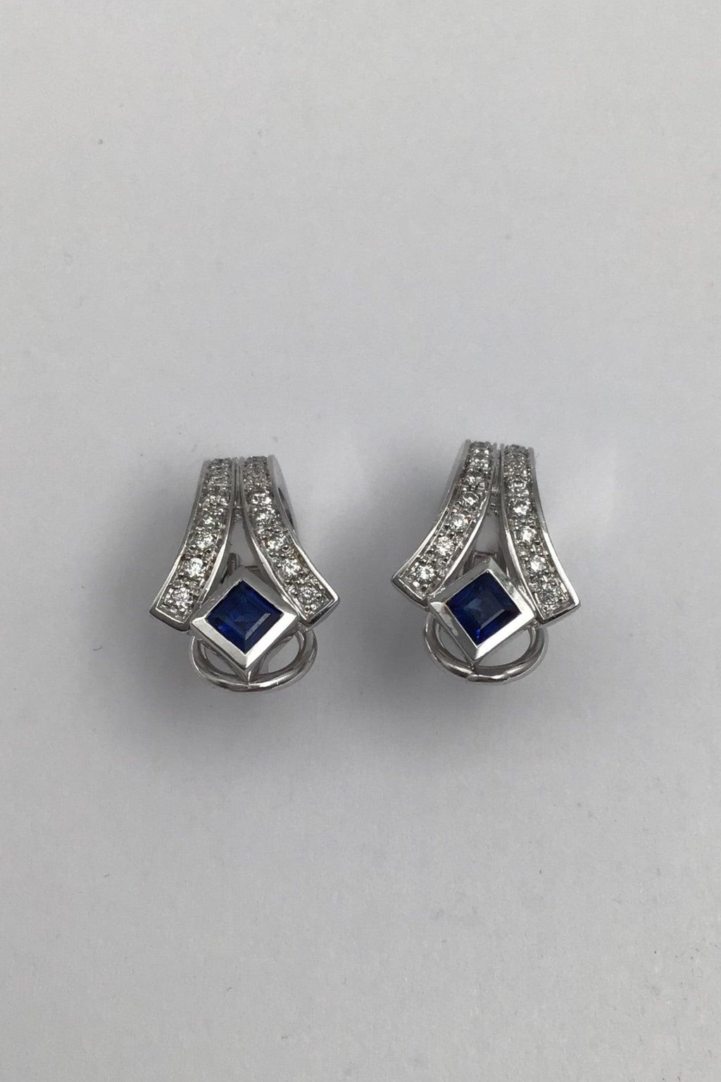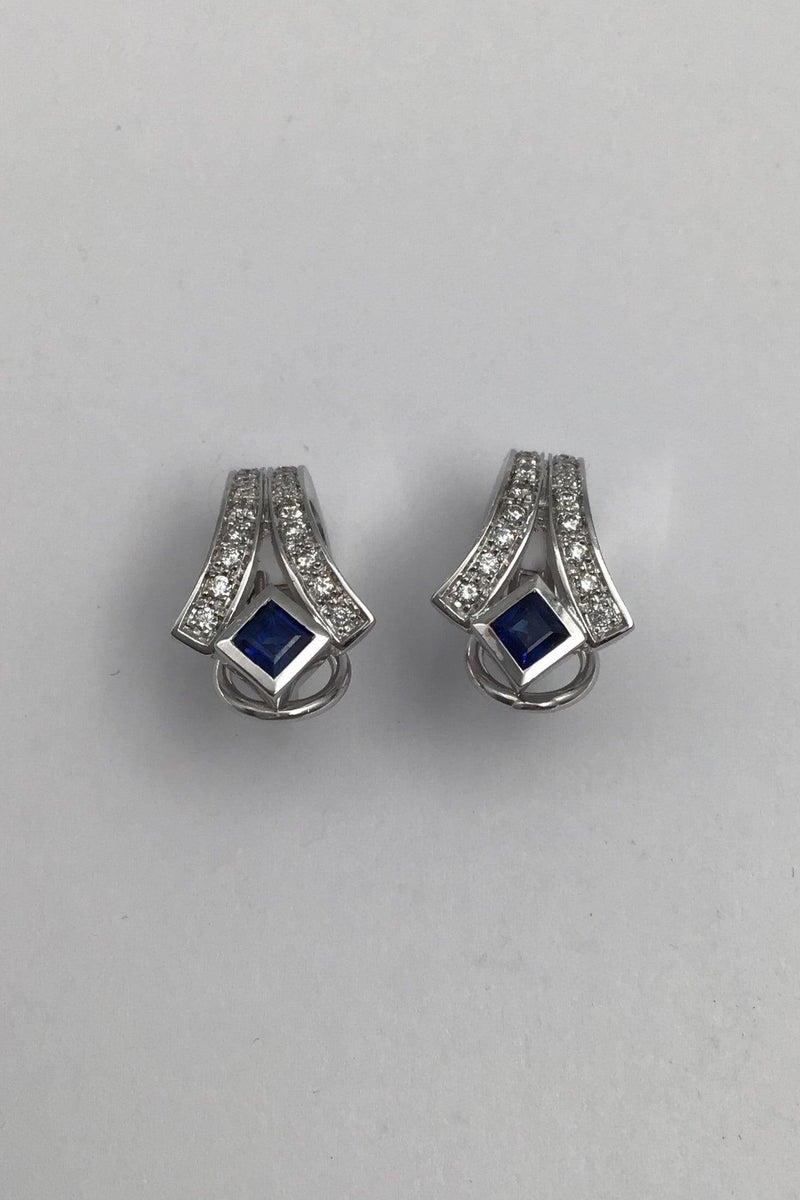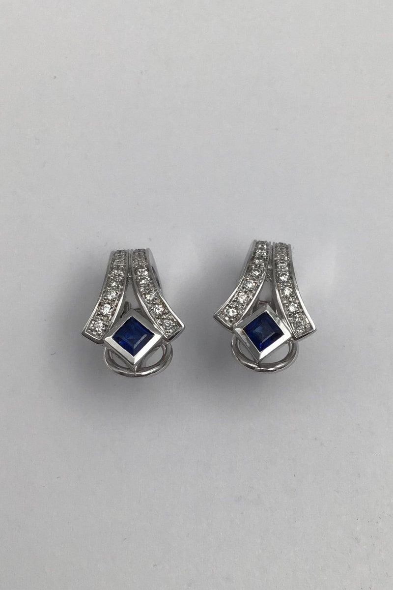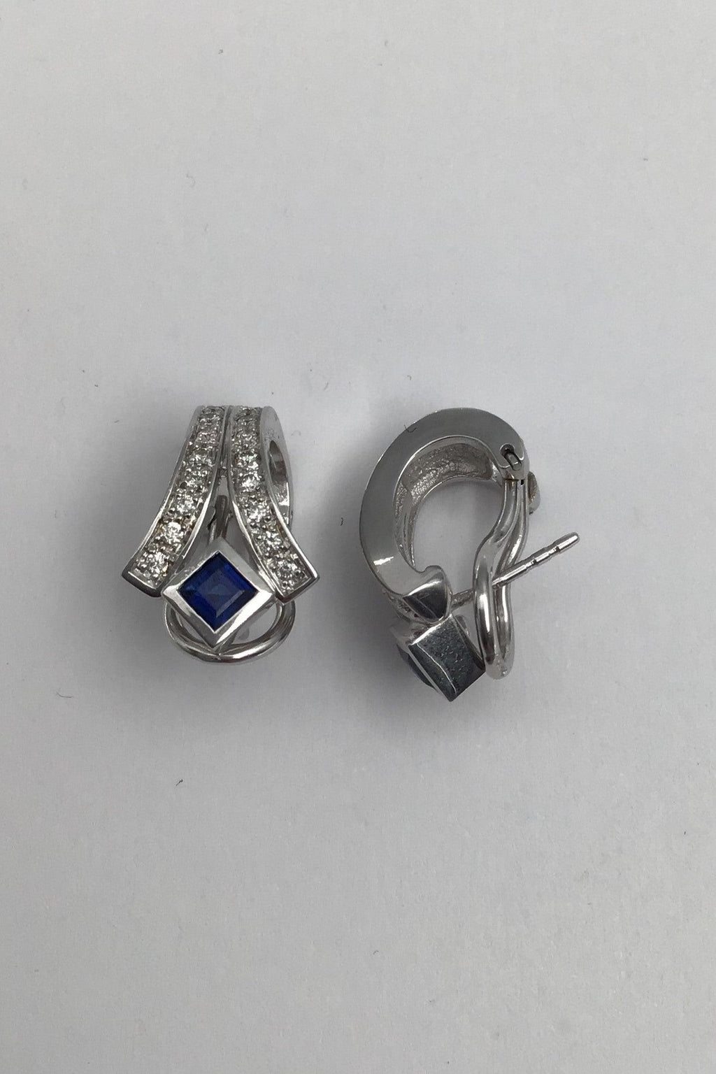 Danske 14 K Hvidguld Ørestikker m Safir & Diamanter