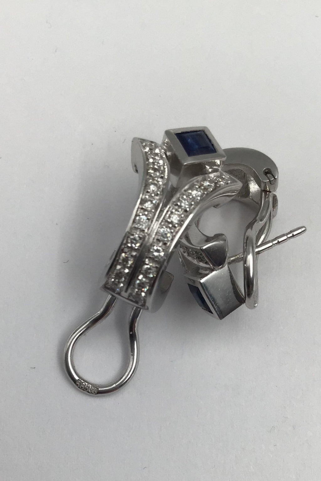 Danske 14 K Hvidguld Ørestikker m Safir & Diamanter Måler 2 cm x 1.2 cm (0.78 inch x 0.47 inch) Samlet Vægt 9.3 gr (0.33 oz)