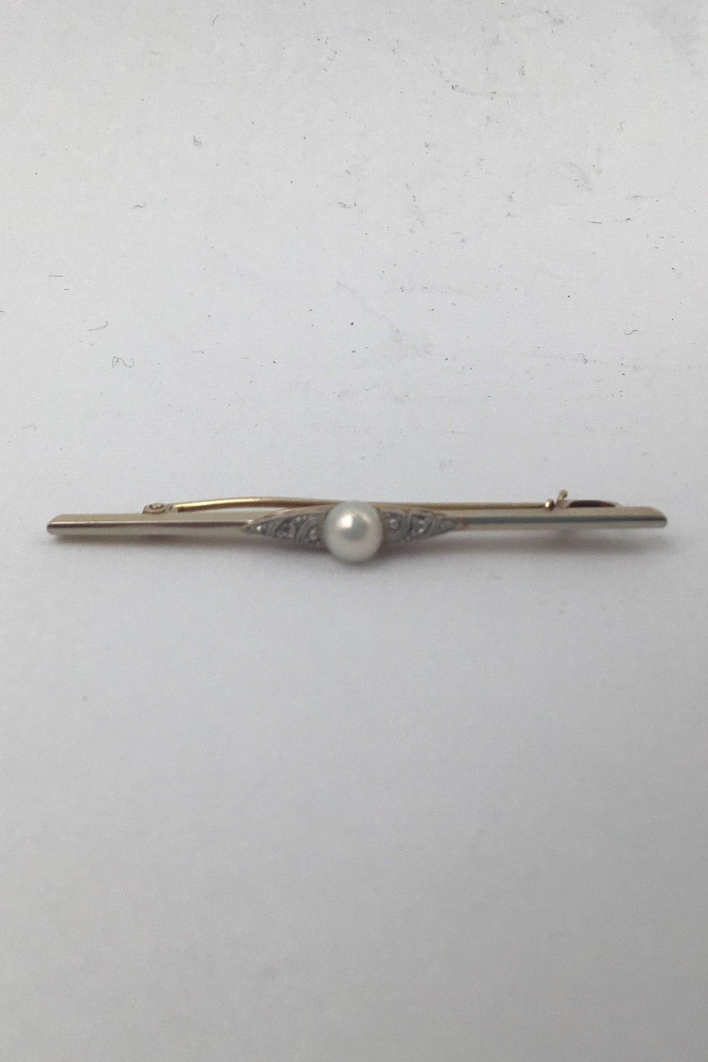 David Andersen 14K Guld Broche med Perle Måler 5.4 cm (2.12 inch) Vægt 2.4 gr. (0.08 oz) (Æske medfølger)
