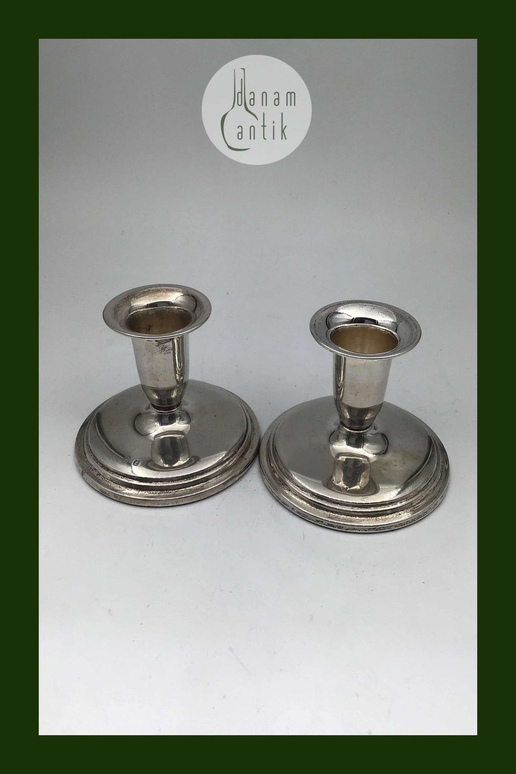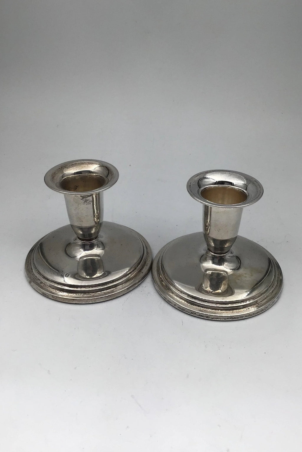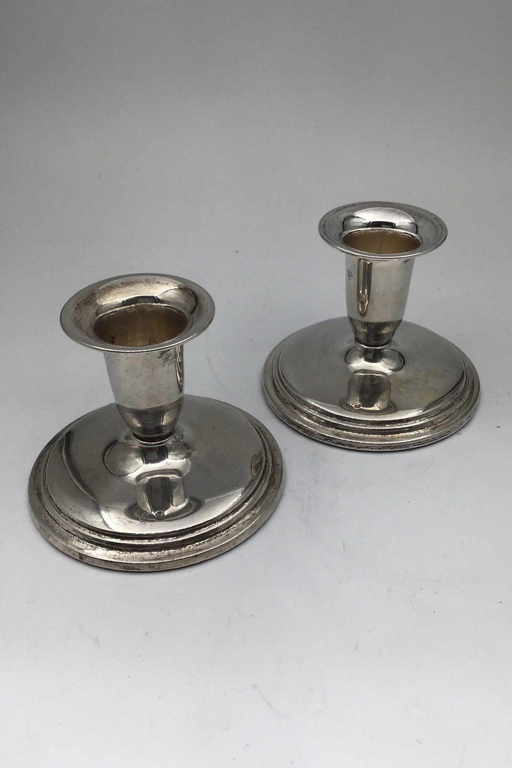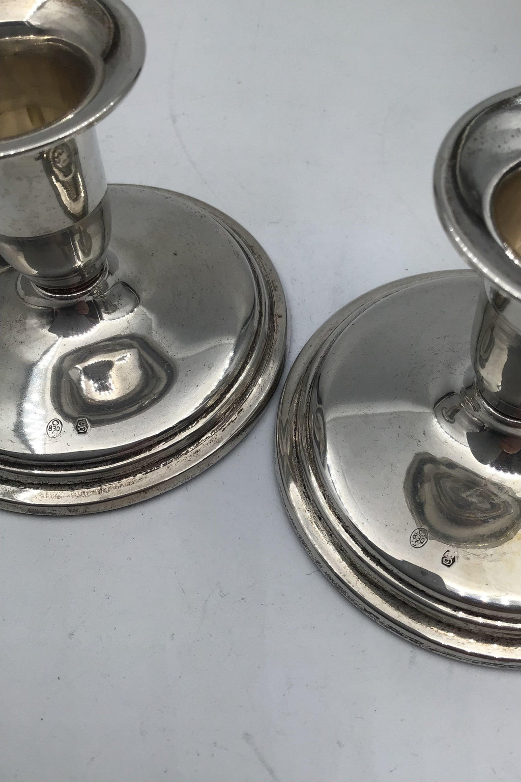 DGS Krone Sølv Lysestager (Par) Måler H 6 cm (2.36 inch) Diam 7.5 cm (2.95  inch) Samlet Vægt 167 gr (5.89 oz) (Udfyldt)