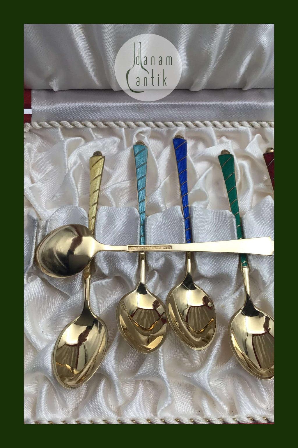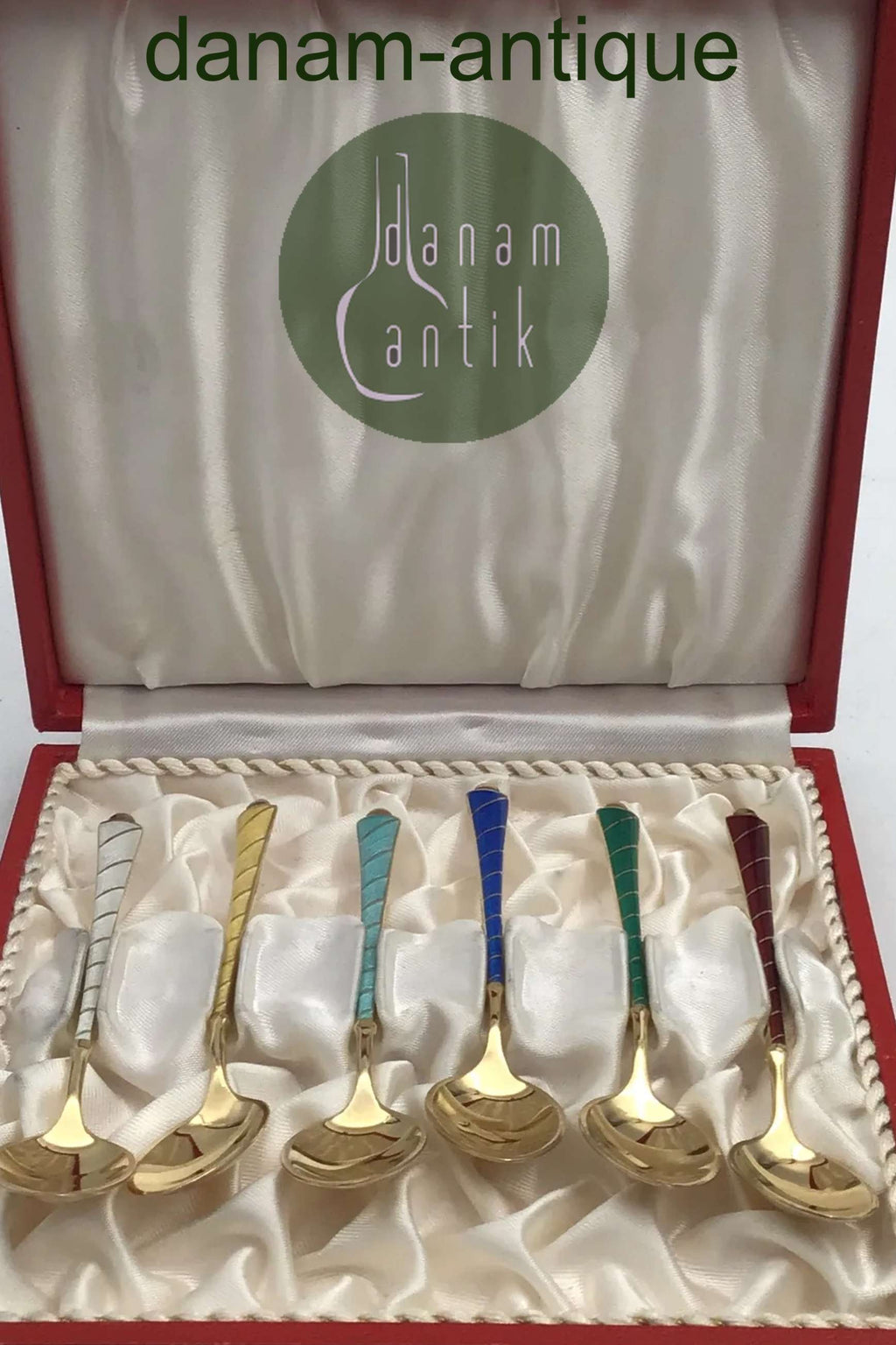 Egon Lauridsen (ELa) Sterling Sølv/Emalje Moccaskeer Forgyldt(6) Måler 9.4 cm (3.70 inch) (Æske)