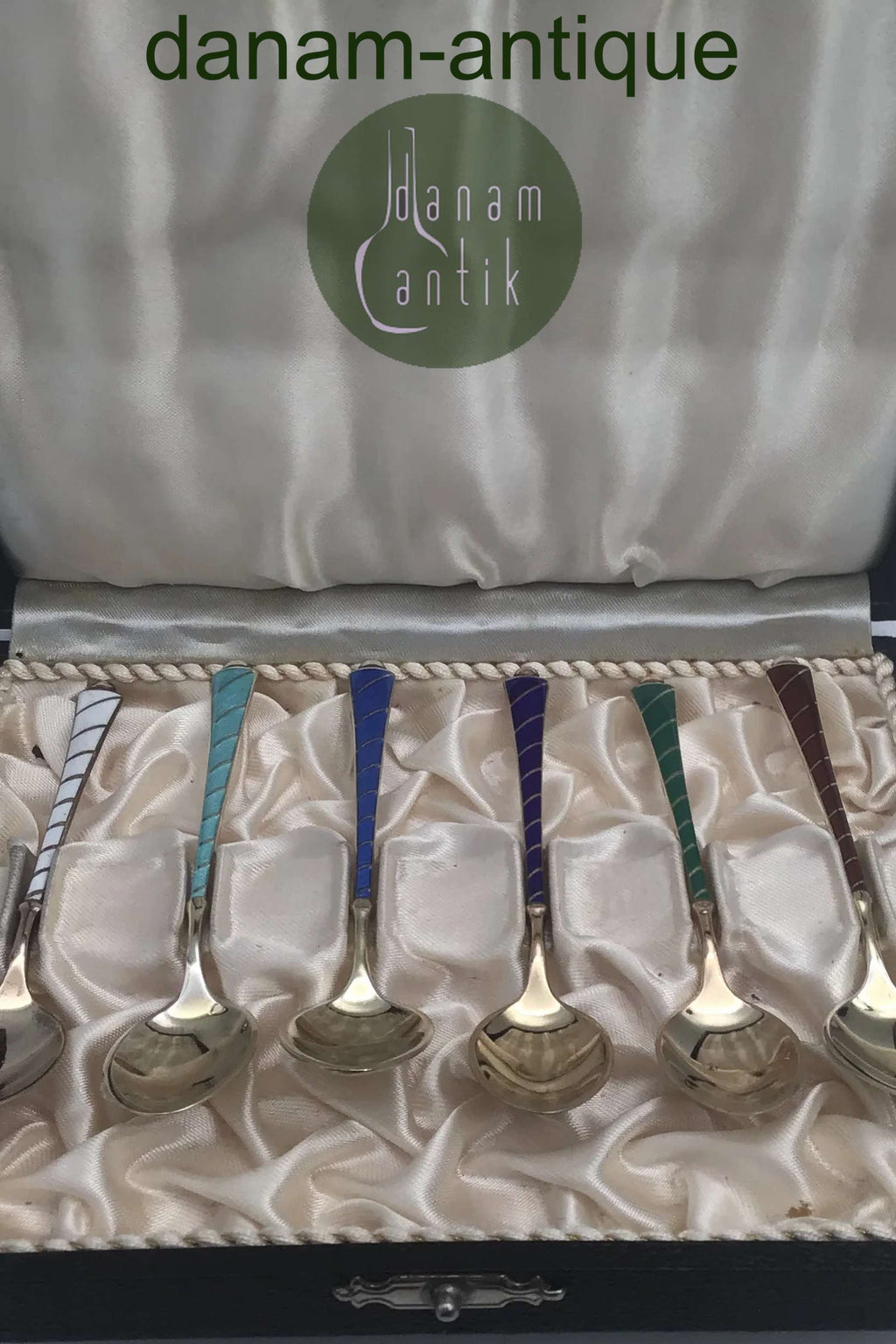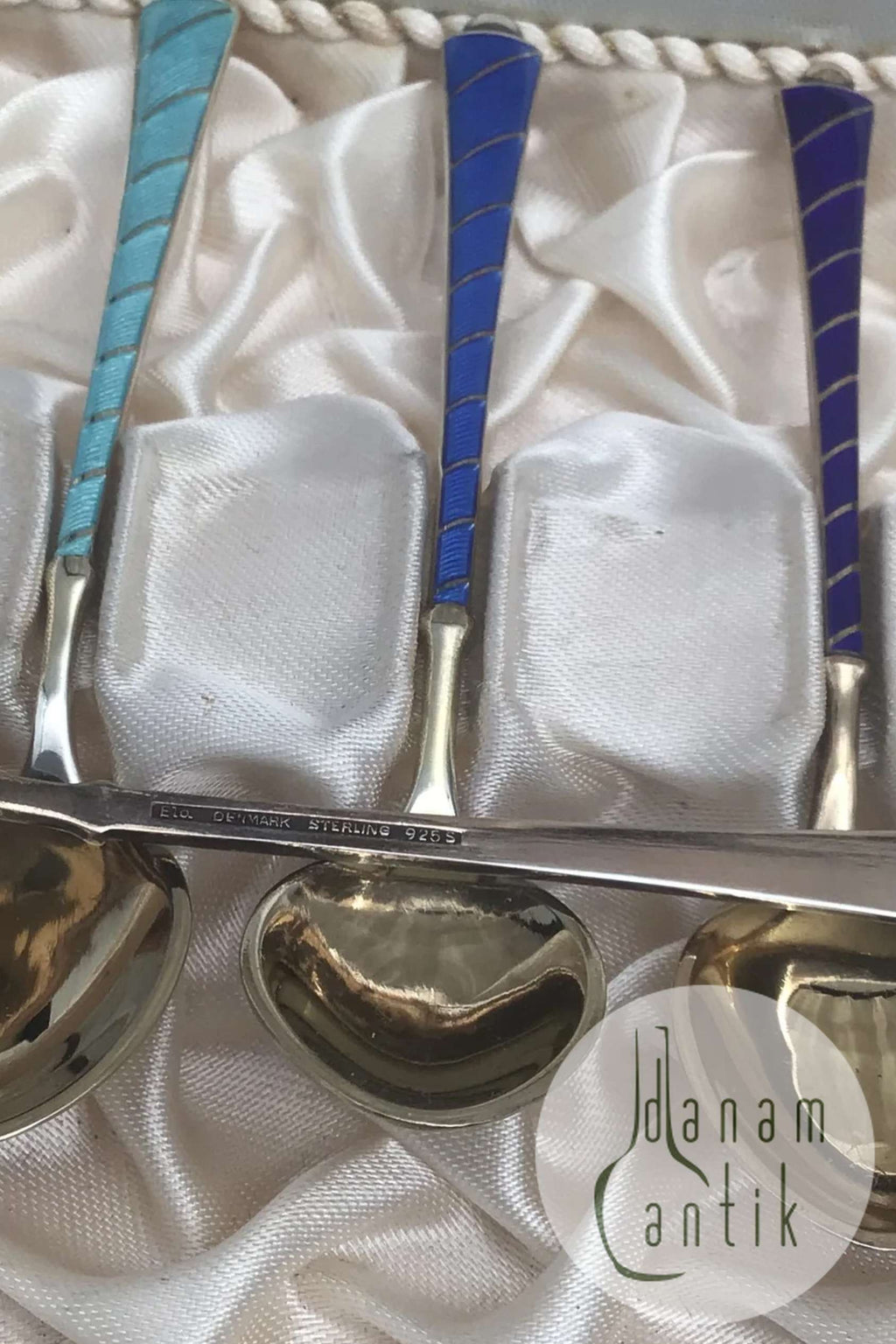 Egon Lauridsen (ELa) Sterling Sølv/Emalje Moccaskeer Forgyldt(6) Måler 9.4 cm (3.70 inch) (Æske)