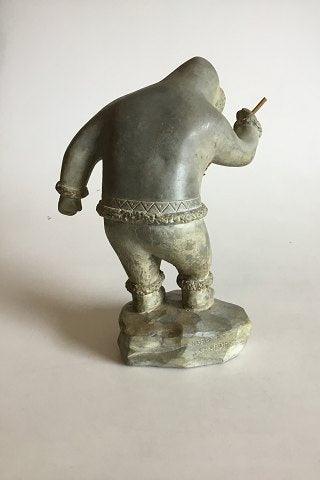 Eskimo, Figur af fedtsten. Ben Abbott, Canada. Signeret Abbott, Canada. Måler 26 cm