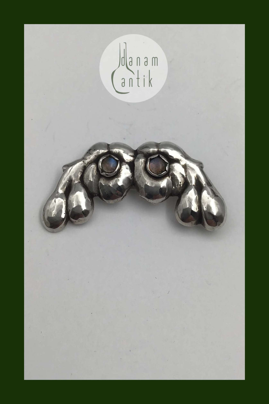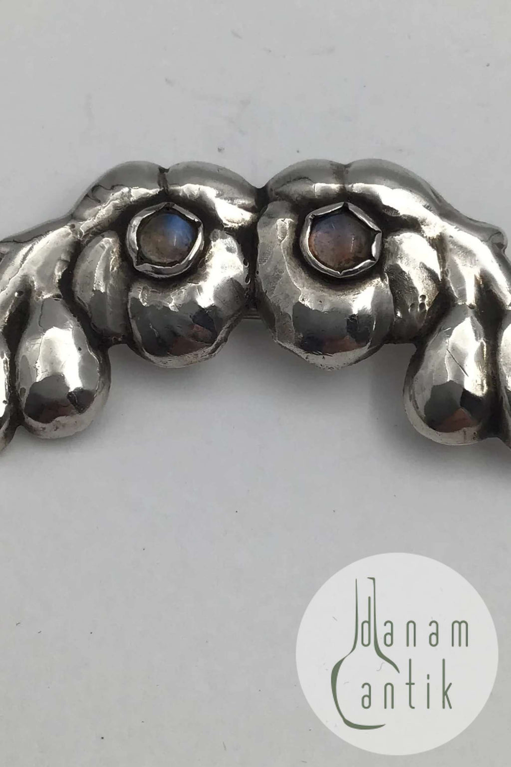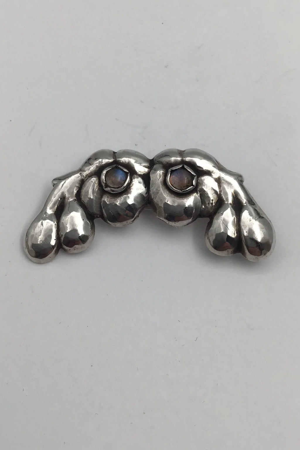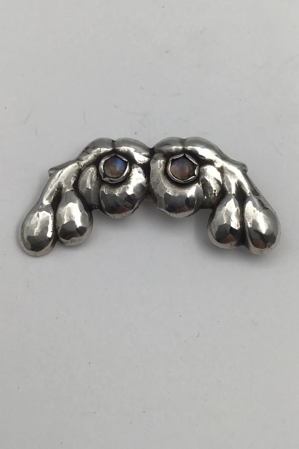 Evald Nielsen Sølv Broche (Månesten) Måler 5 cm x 2.2 cm (1.96 inch x 0.86 inch) Vægt 8.6 gr (0.30 oz)