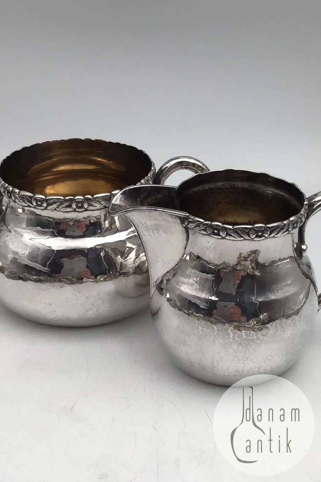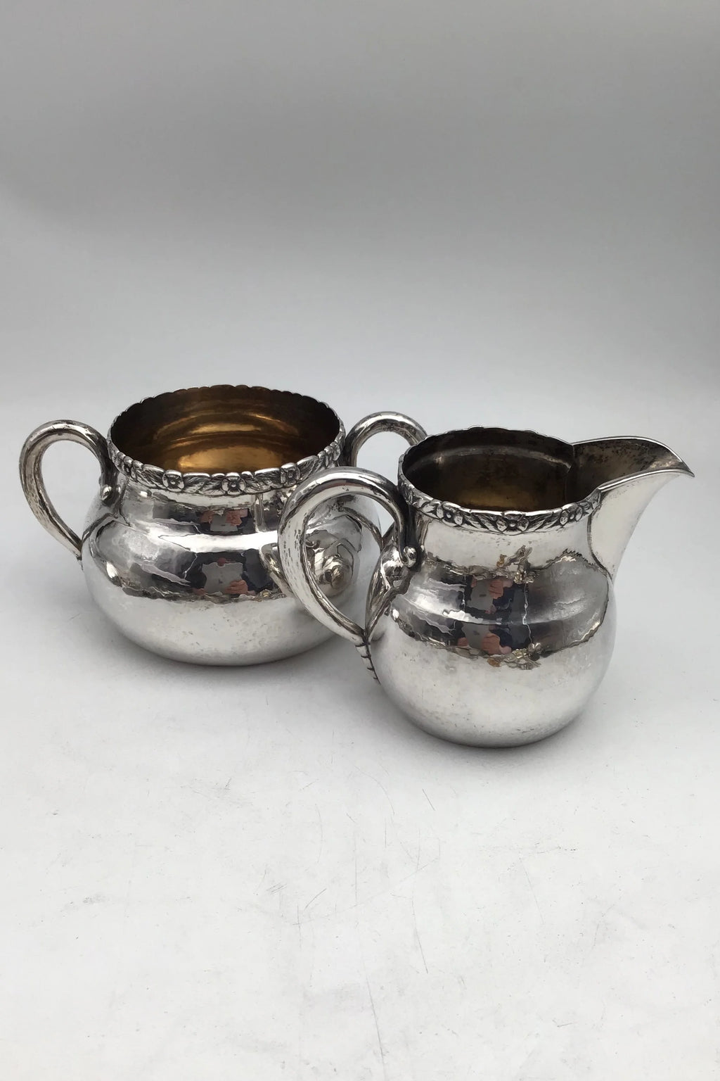 Evald Nielsen Sølv Fløde Sukker Sæt (1927+1928) Måler H 8+9 cm (3.15 inch +3.54 inch) Samlet Vægt 380 gr (13.4 oz)