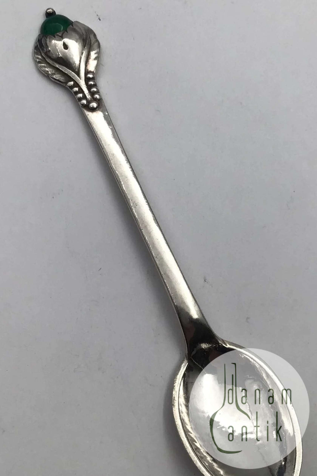 Evald Nielsen Sølv No 3 Kaffeske (Grøn Agat) Måler 11.5 cm (4.52 inch)