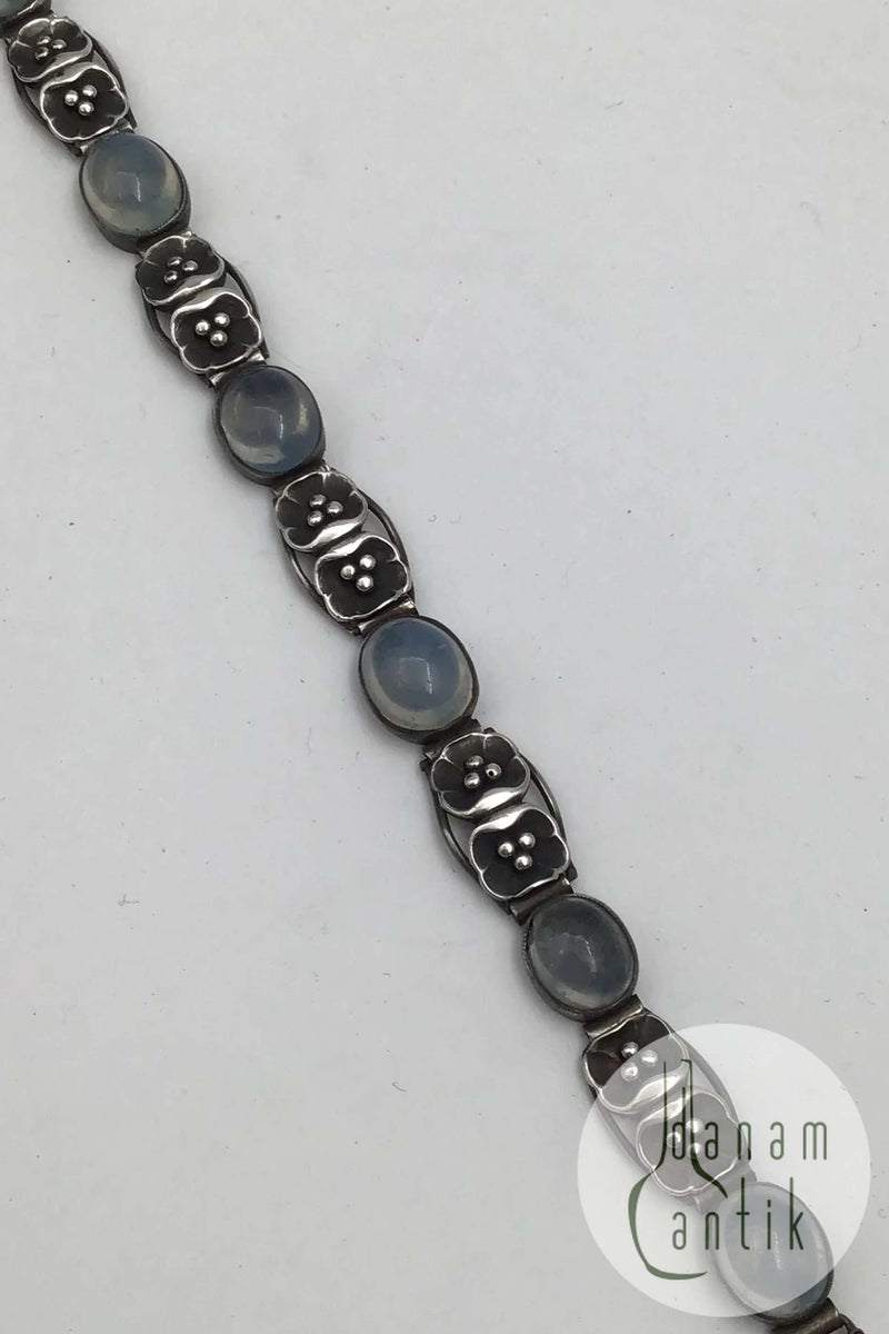 Evald Nielsen Sterling Sølv Armlænke Månesten Måler 19 cm (7.48 inch) Vægt 22.7 gr(0.80 oz)
