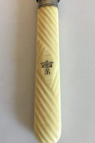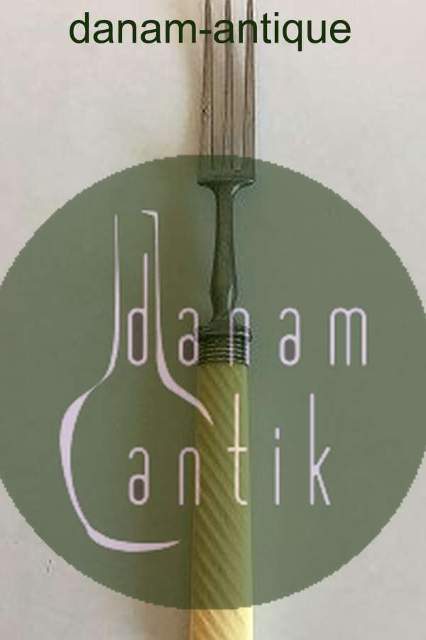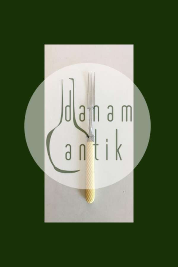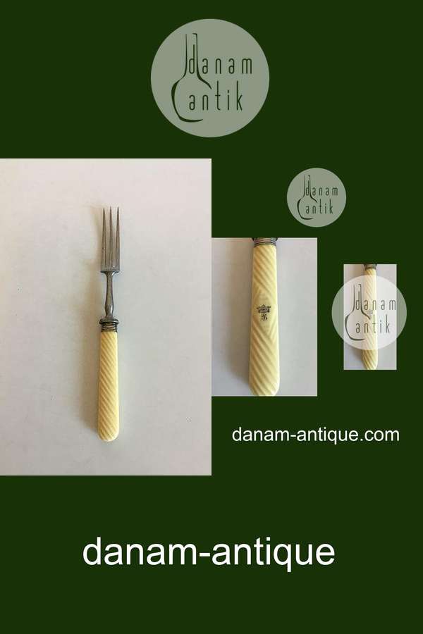 Gaffel af stål med benskaft. Måler 21,7 cm