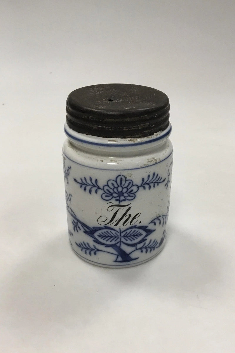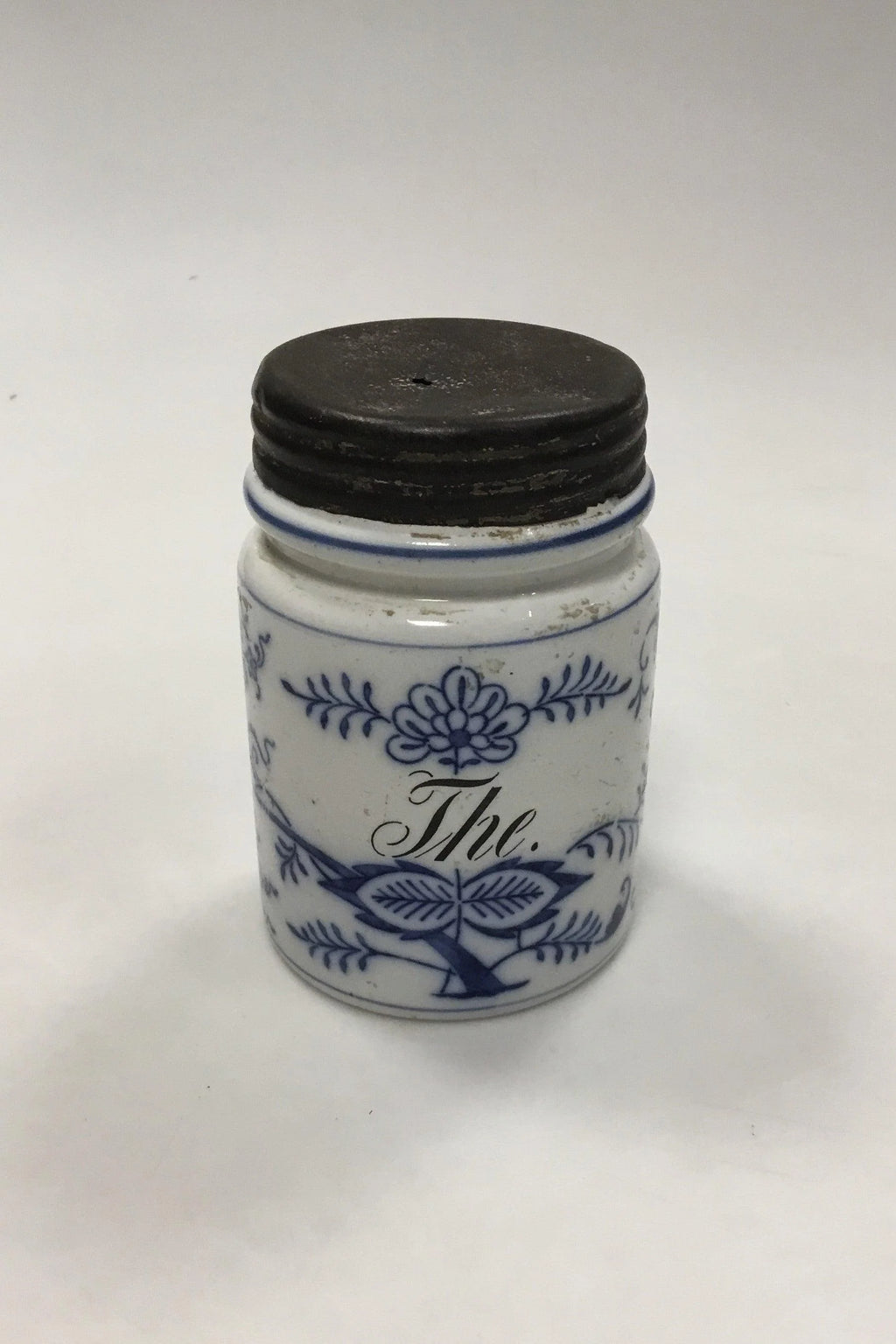 Gammel Blåmalet Thedåse med skruelåg af metal. Måler 13 cm ( 5 1/8 in. )