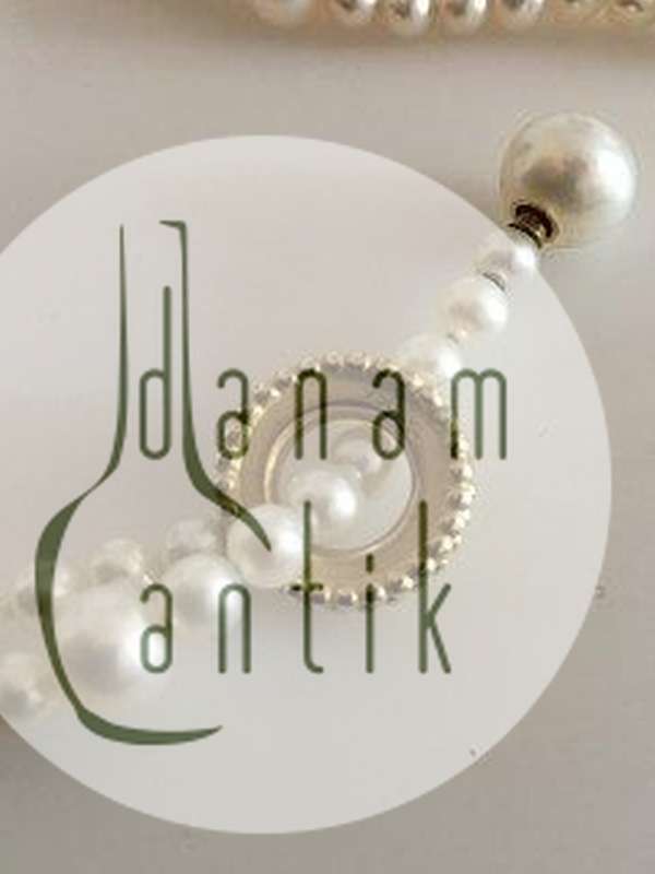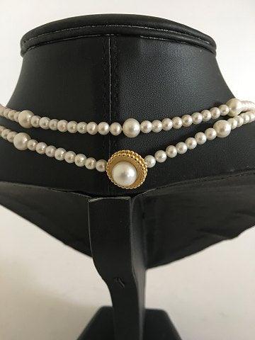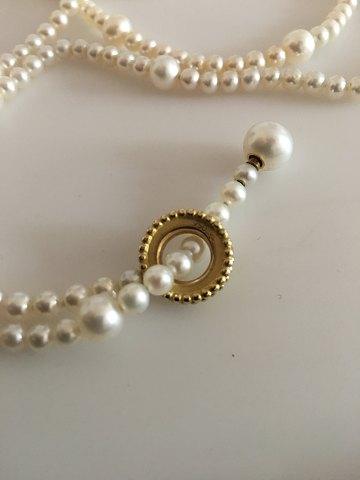 Georg Jensen Collier med Hvide Ferskvandskulturperler og Guldlukning