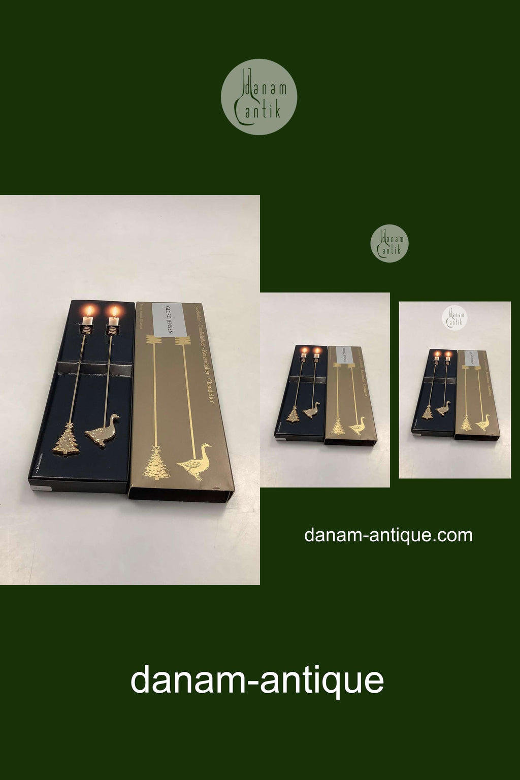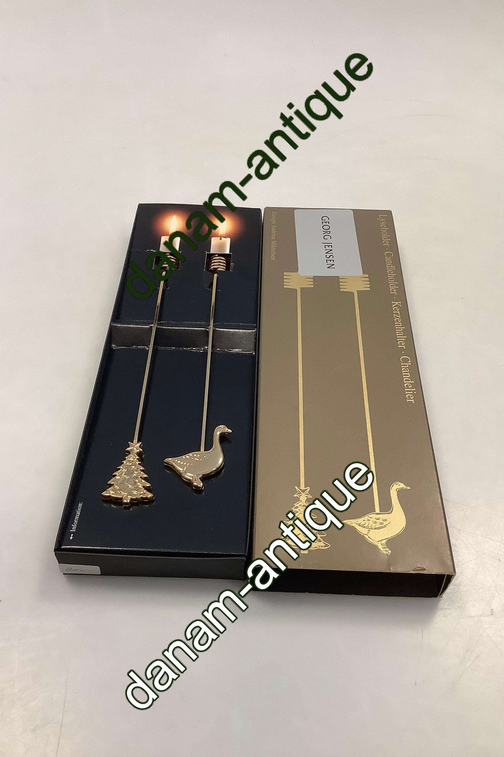 Georg Jensen Golden Christmas Lyseholder - Gås og Juletræ 1998