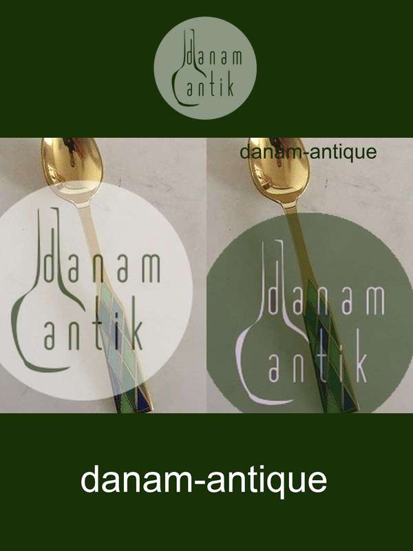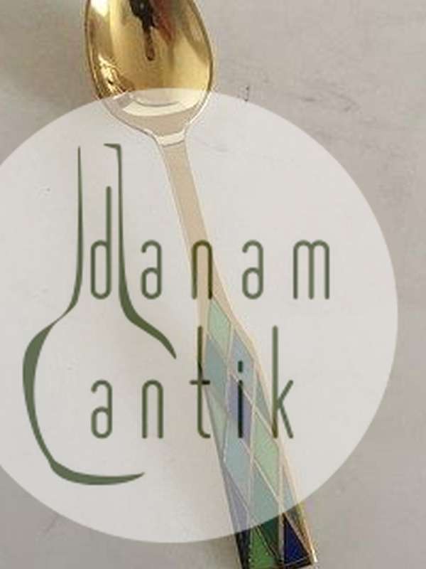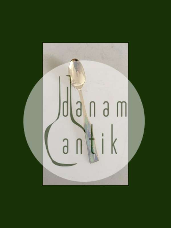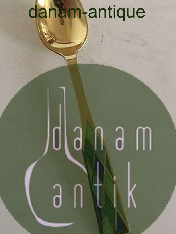 Georg Jensen Harlequin Kaffeske i Forgyldt Sterling Sølv med Grøn Emalje.