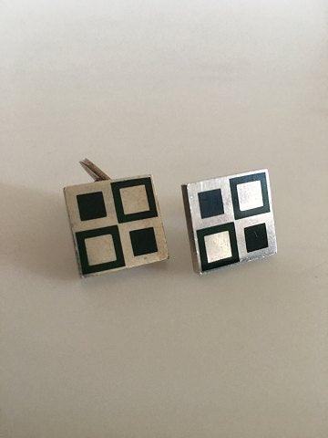 Georg Jensen Manchetknapper No. 87 i Sterling Sølv og Grøn Emalje. Designet af Magnus Stephensen. Måler 1.5 x 1.5 cm. Vejer tilsammen 19 gram.