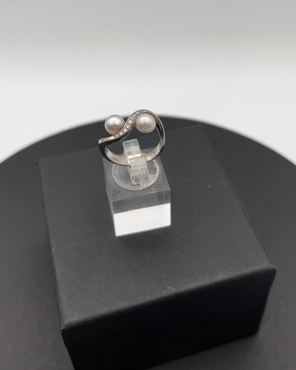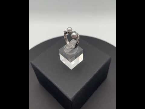 Georg Jensen og Wendel 18K Hvidguldsring med Perler og Brillanter Str 54 Vægt 5.1gr