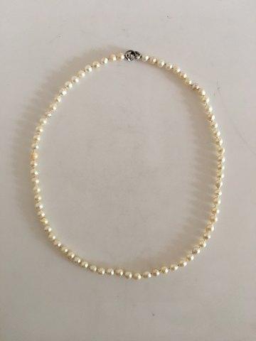 Georg Jensen Perlehalskæde med Lås af Hvidguld. Kæden er 63 cm L. Perlerne måler 0.6 mm. Vejer 49 gram. I god stand.