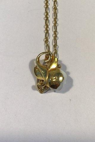 Georg Jensen (Royal Copenhagen) Sterling Sølv(forgyldt)Halskæde med/Porcelæn Vedhæng No 239