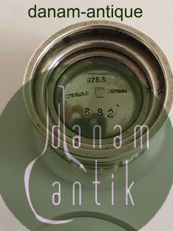 Georg Jensen Sterling Pyramide Saltkar No 632 med Glas Indsats. I pæn stand og med intakt glas. Ca 2.3 cm H. 4 cm Ø. Vejer ca 37 gram.
