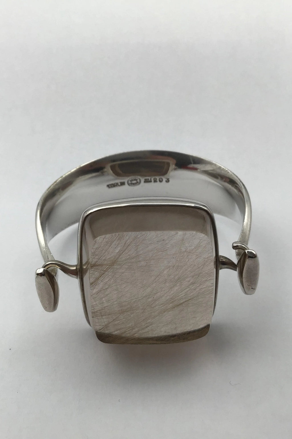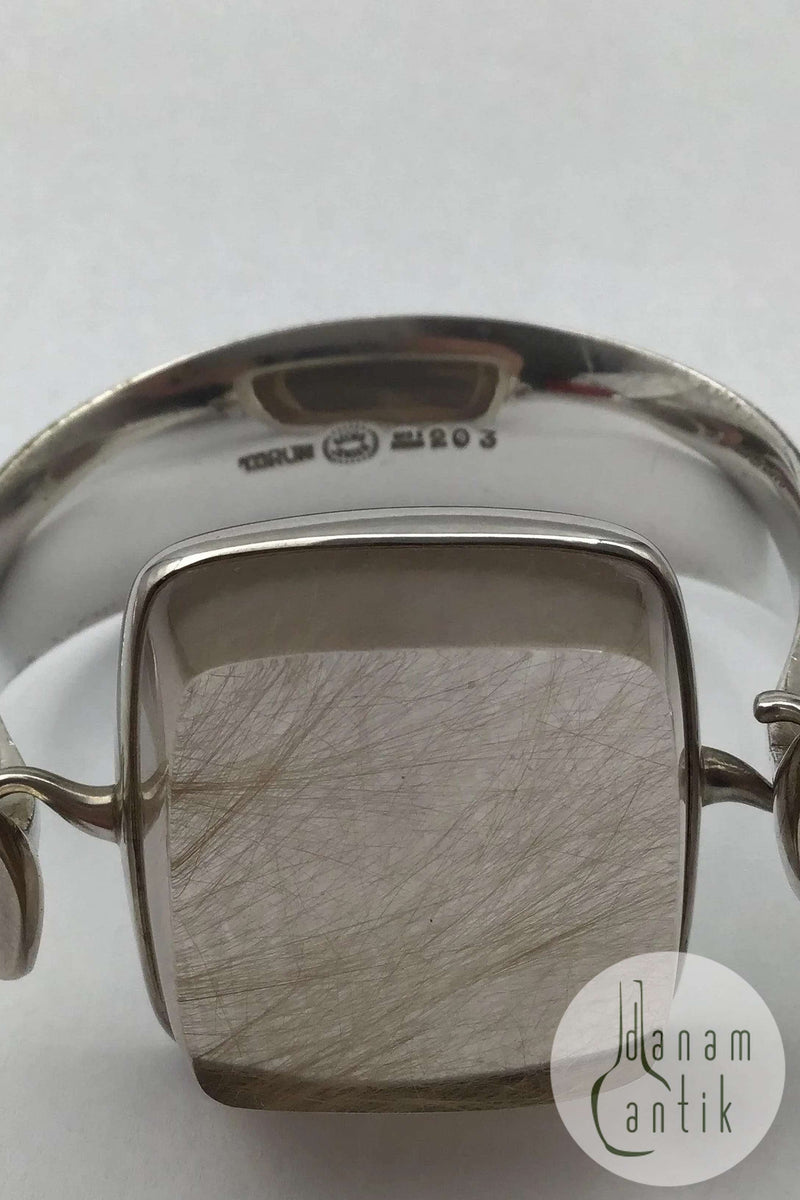 Georg Jensen Sterling Sølv Armring No. 203 + 203B Rutil Quartz Torun Måler indvendigt Diam 5.8 cm (2.28 inch) Sten 203B måler 3.5 cm x 3.6 cm (1.37 inch x 1.41 inch) Samlet vægt 73.5 gr / 2.59 oz