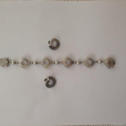 Georg Jensen Sterling Sølv Art Deco Smykke sæt af Armbånd og Øreskruer No 101 og No 97. Måler 19cm og 2,2cm. Vejer 32g, 8,7g
