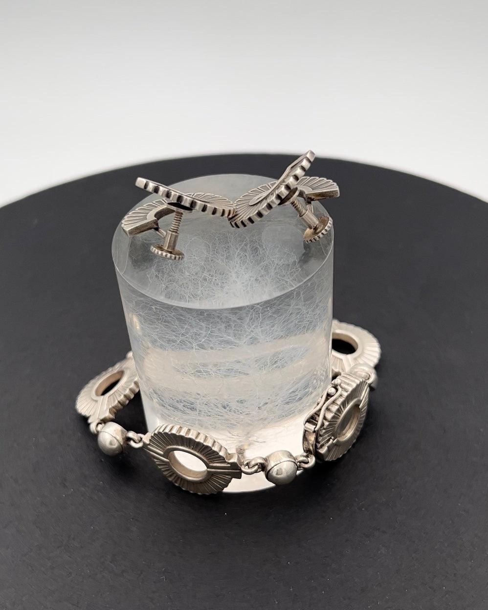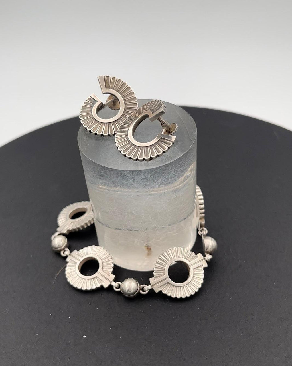 Georg Jensen Sterling Sølv Art Deco Smykke sæt af Armbånd og Øreskruer No 101 og No 97