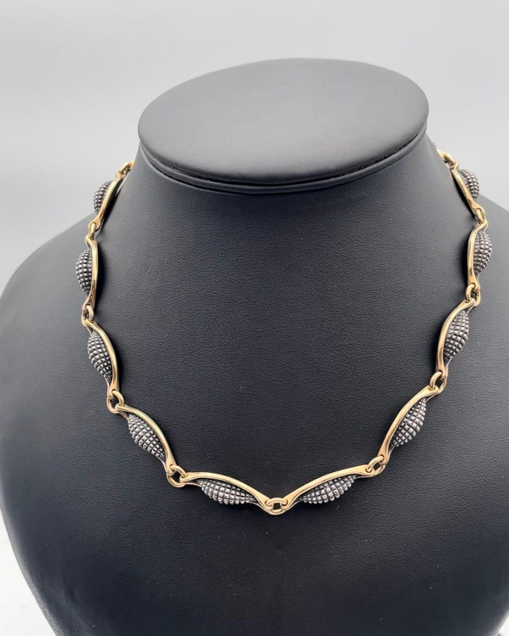 Georg Jensen Sterling Sølv Halskæde No 425. Oxideret og Forgyldt Sterling Sølv Halskæde designet af Lene Munthe for Georg Jensen. Måler 45 cm. Vejer 58 gram.
