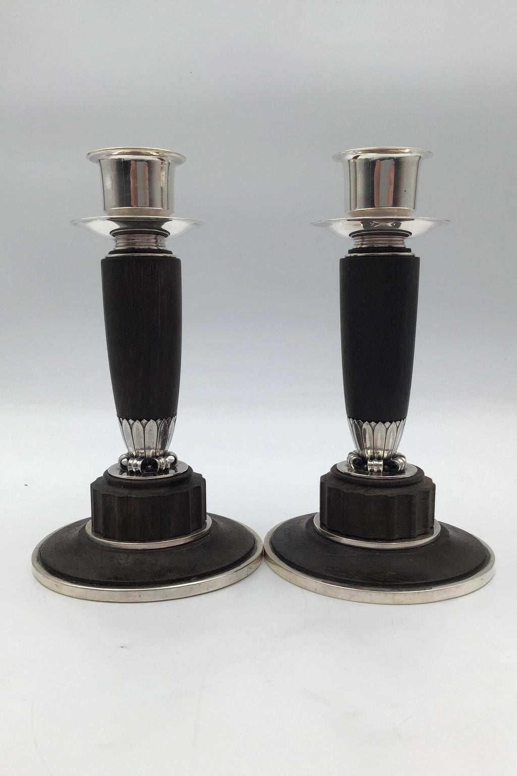 Georg Jensen Sterling Sølv Ibenholt Lysestager No. 2011 (2) (1930-1945) Måler H 16 cm (6.29 inch) Diam 9 (3.54 inch) Design Gundorph Albertus