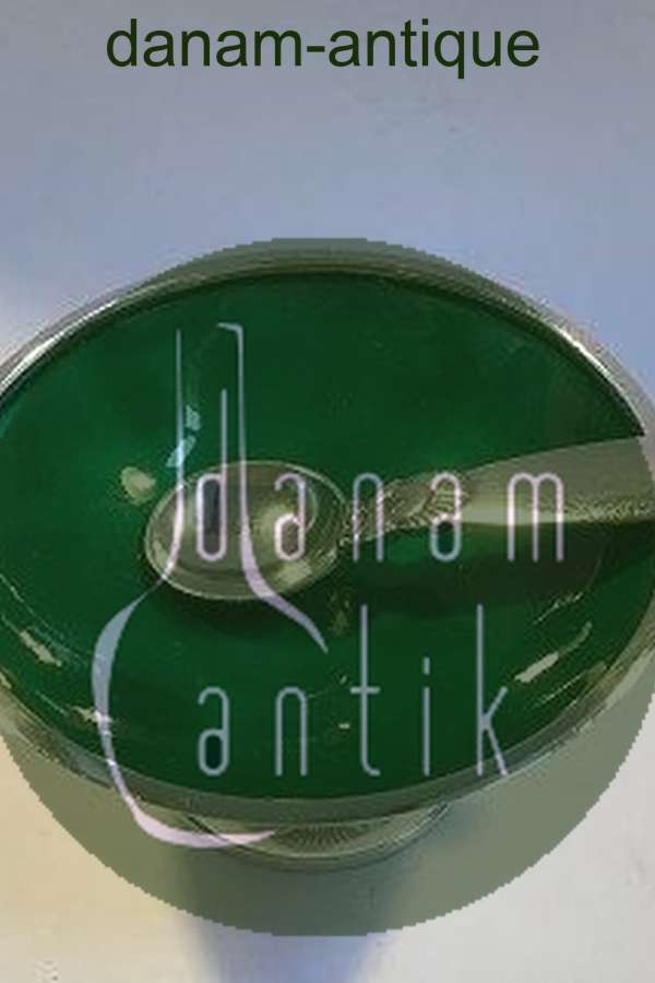 Georg Jensen Sterling Sølv Kaktus Saltkar(Grøn emalje) No 629 A samt Saltske Diam 6 cm H 3.2 cm Samlet vægt ca 50 gr