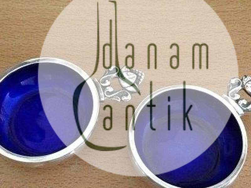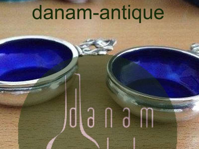 Georg Jensen Sterling Sølv Konge Salt kar med blå emalje No 62