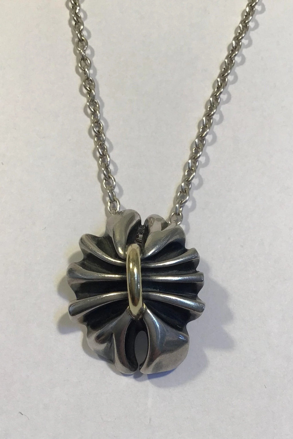 Georg Jensen Sterling Sølv og 18K Guld Lene Munthe Halskæde No 400 Måler Kæden 74 cm(29 9/64 in) Vedhæng 3.2 cm x 2.5 cm(1 17/64 in x 1 in) Samlet Vægt 27.8 cm/0.98 oz