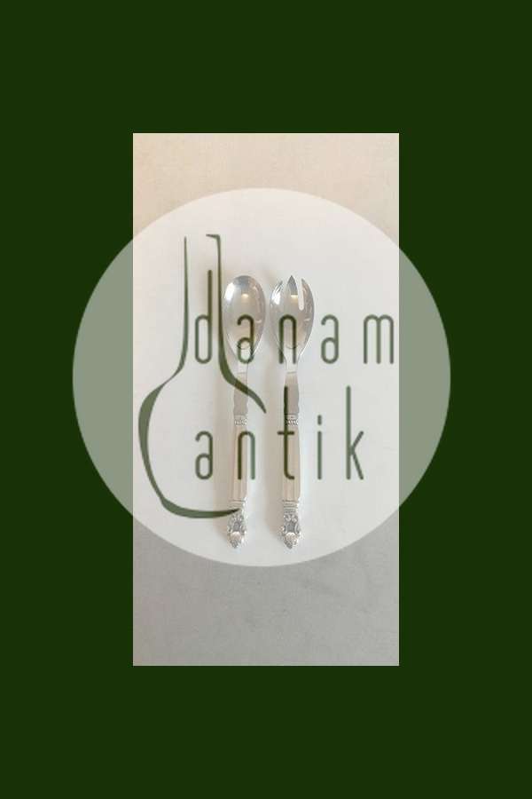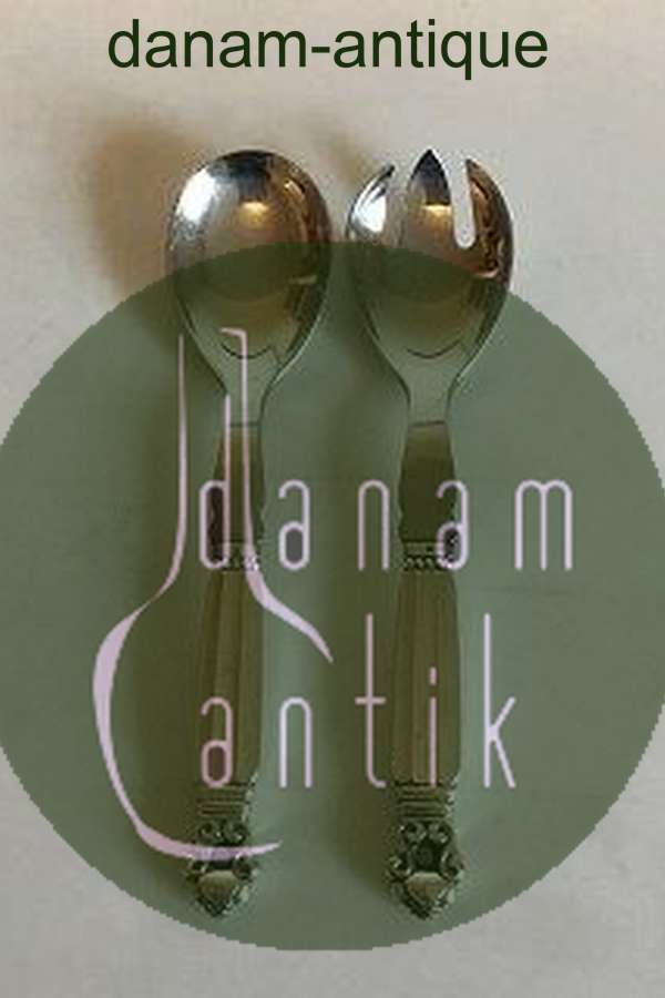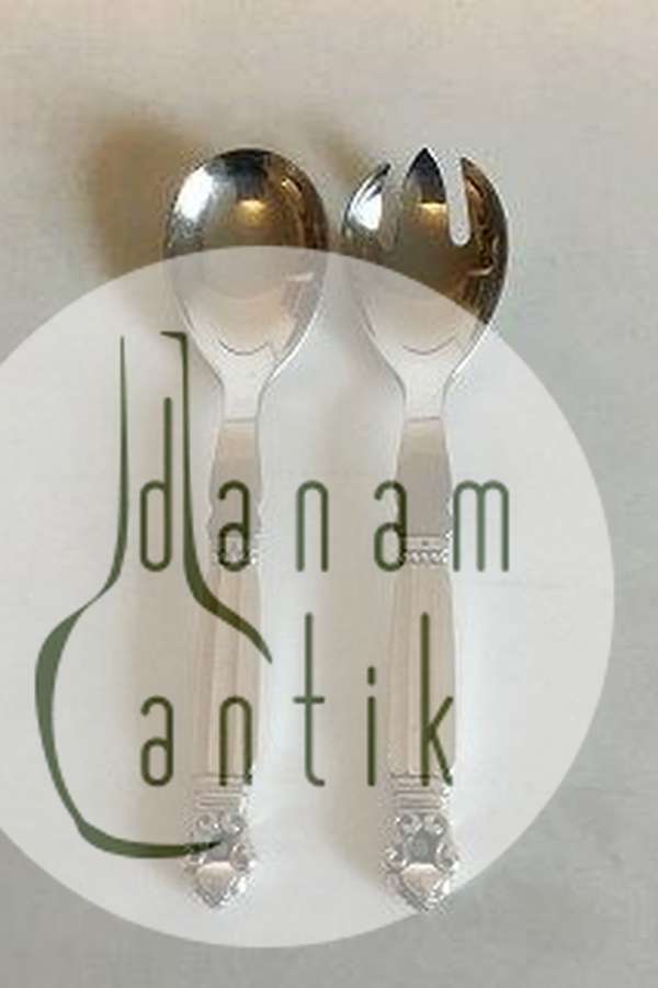 Georg Jensen Sterling Sølv og Rustfrit Stål Lille Salatsæt Konge No 134. Måler 15,9 cm