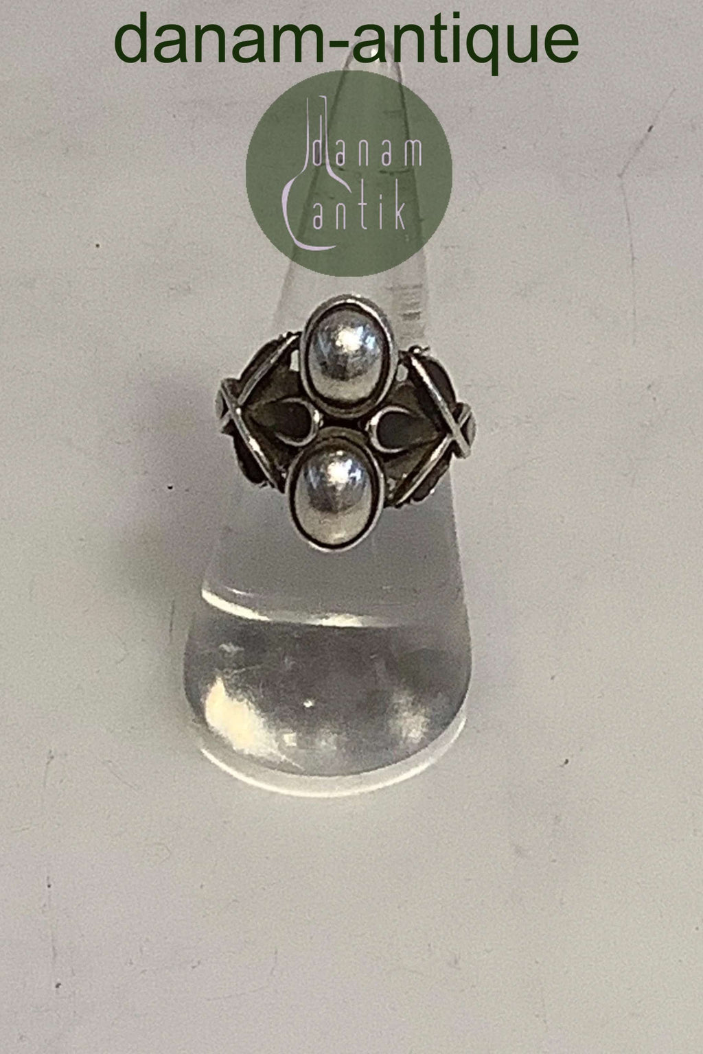 Georg Jensen Sterling Sølv Ring No 48, To sølvsten. Designet af Henry Pilstrup. Ringstørrelse 53. (US 6 ½) Vægt 7,7 gram (0.27oz)