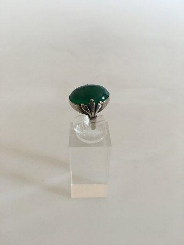 Georg Jensen Sterling Sølv Ring No 51 med Grøn Agat. Ringstørrelse 44. Vejer 6 g. Fra efter 1945.