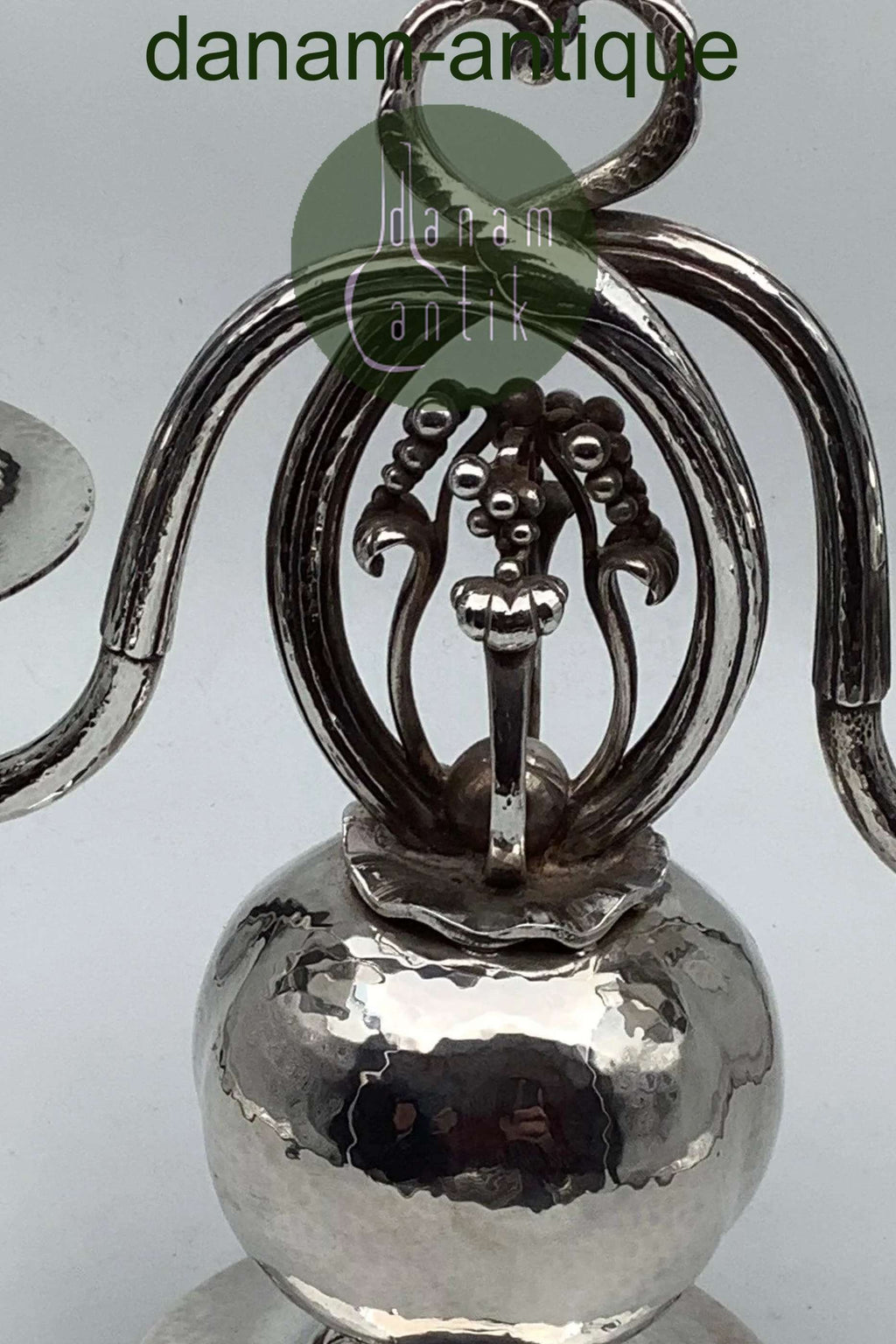 Georg Jensen Sterling Sølv Toarmet Lysestage No 324. Stagen er fra 2002 Granatæble og Drue design kreeret af Georg Jensen i 1919.